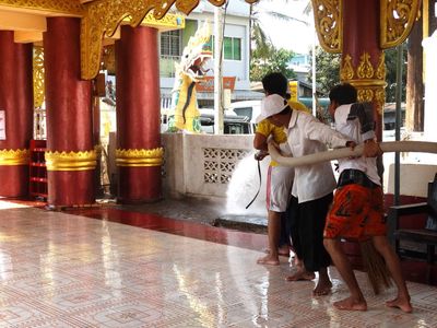 Не мешкая идем к нему, где с удивлением наблюдаем картину мытья полов.В буддийских храмах, внутри монастырей и даже пещер разрешается ходить только босиком. В дальнейшем я уже не удивлялась чистоте полов, на которые можно запросто сесть, лечь и даже поспать.