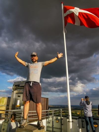 Орхус – второй по величине город королевства Дания мы туда и направились! Кто такие мы? На самом деле побывал не только я, но и моя бывшая супруга Наталья Гундарева (хороший преподаватель английского, кстати) и куча друзей из #sanghabustour! С Наташей мы уже в 4 раза стояли на вершинах из программы Корона Европы. А для друзей на пути мы с организаторами Бастура приготовили сюрприз, показали им высшую точку страны, из которой Буддизм Алмазного Пути стал распространяться по Европе и всему Западному Миру. Лама Оле Нидал, что родом из Дании, в своих лекциях о буддизме не раз упоминал, что ему в детстве много раз снились высокие горы, которых он в послевоенной Дании не видел никогда, их просто в Дании нет, а интернета тогда не было. В этих снах в этих горах он воевал с захватчиками своей страны. Он имел ввиду воспоминания о Гималаяих и Тибете из его прошлых жизней. Ну и как доказательство он приводил пример о горах из географии Дании, мол поезжайте проверьте, в Дании гор нет! Мы поехали и проверили!