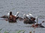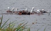 Белые пятна — это не пух перезревших камышей. Это сотни белых птиц...