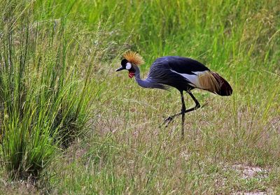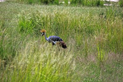 Не много не доехав до воды, мы увидали венценосного журавля.