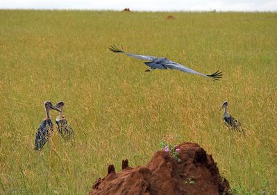 На другом термитнике неподалеку такую же позицию занимал вожак стаи аистов-марабу.