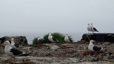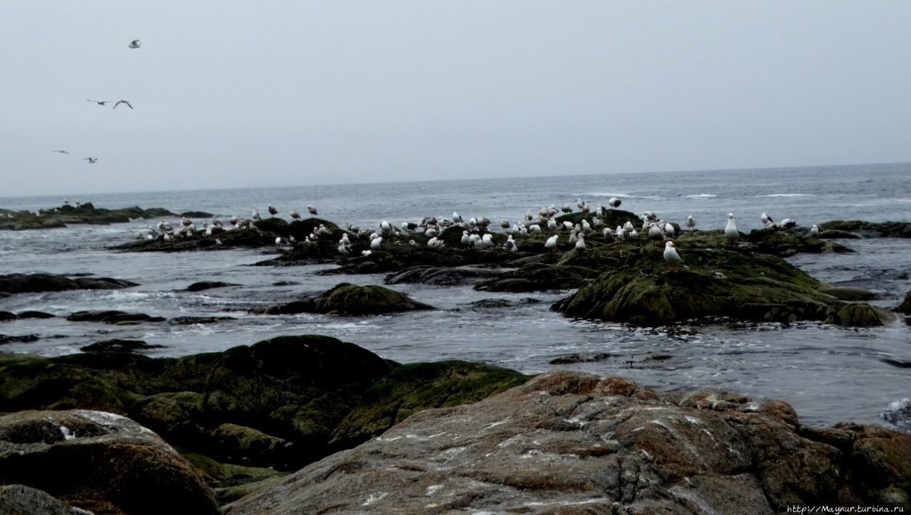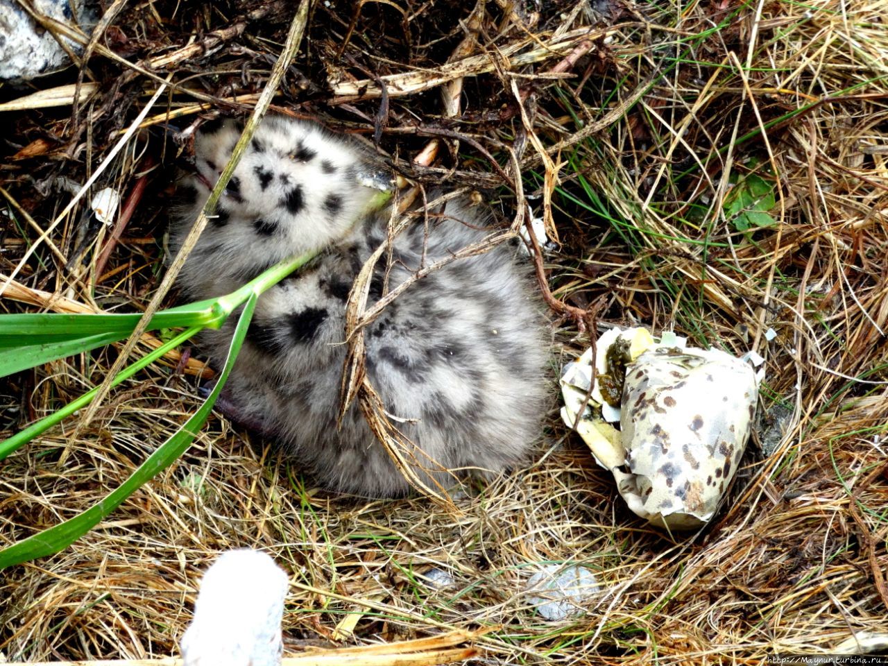 Все же время подошло, мы высадились и, не мешкая, начали подъем на маяк.Сейчас вы поймете, почему каждый заезд ожидает отплытия предыдущего. Вся прилегающая территория к маяку и само подножие маяка оккупировано чайками, которые высиживают птенцов. Гнезда и уже вылупившиеся птенцы находятся под ногами проходящих и чайки вынуждены сниматься с гнезд, оставляя птенцов и яйца на нашу внимательность и совесть.