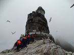 Все же время подошло, мы высадились и, не мешкая, начали подъем на маяк.Сейчас вы поймете, почему каждый заезд ожидает отплытия предыдущего. Вся прилегающая территория к маяку и само подножие маяка оккупировано чайками, которые высиживают птенцов. Гнезда и уже вылупившиеся птенцы находятся под ногами проходящих и чайки вынуждены сниматься с гнезд, оставляя птенцов и яйца на нашу внимательность и совесть.