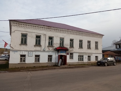 Напротив музея возвышается Туристский информационный центр Мышкина. Это бывший дом купцов Столбовых построенный на рубеже XIX и XX веков. Иван Столбов был одним из самых богатых людей города, но он ничего не жертвовал городу. За его скупость и прижимистость горожане дали прозвище «Ваня бедный».