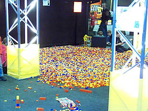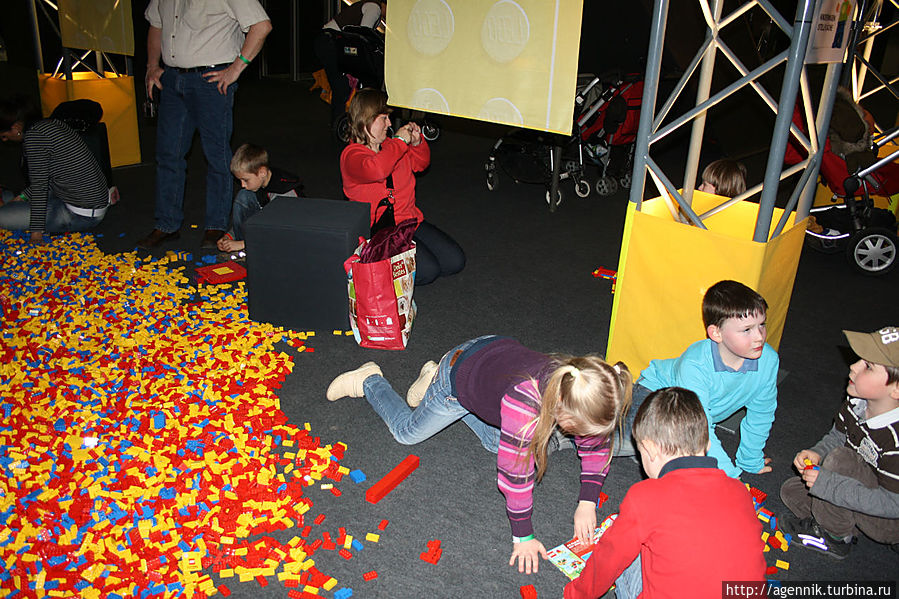 Детали ЛЕГО из разных наборов грудами свалены на полу, можно собирать все, что только придет в голову — именно этим дети здесь и занимаются.