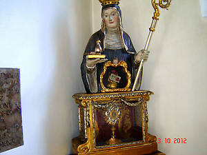 Раньше ее мощи были скрыты за деревянным склепом, но в 1883 году интерес к ее культу заставил открыть мощи этой святой для обозрения.