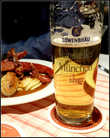 Муж в предвкушении вечера взял себе Hofbräu Original, а я Löwenbräu Radler. Муж эти мои пристрастия считает полный фигней, а я люблю подобные "детские" сорта типа Radler и Russbier (Ruß'n) и чем больше лайма, тем лучше. Кстати, про "детские" сорта — это не шутка. Ведь в это пиво на самом деле добавляют лимонад и оно получается совсем слабеньким. А Russbier, по легенде, появилось в 1922 г. именно потому, что хозяин пивной не смог напоить чистым пивом большую группу посетивших его спортсменов-велосипедистов и добавил в него лимонад.