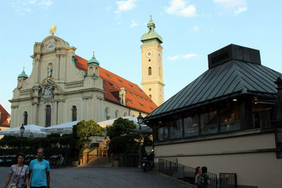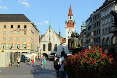 Центральная площадь Мюнхена,на ней находятся многие достопримечательности города,в том числе Новая и Старая Ратуши,рынок Виктуаленмаркт и церковь Святого Петра.