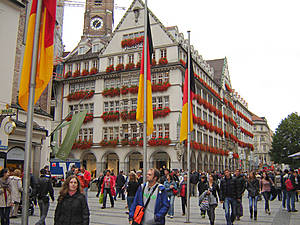 Раньше горожане называли эти ворота в честь хозяина придорожной таверны "Штахус". Официальное название этих западных ворот у входа в старый город.- Карлстор.От Карловых ворот с запада на восток тянется красивая пешеходная улица, главная магистраль старого города, доходя до Изарских ворот. Приятно пройти через старинные арки ворот. А затем оказаться на улице, проходящей вдоль домов, украшенных буйным цветом герани и небольшими статуэтками на фасаде зданий.