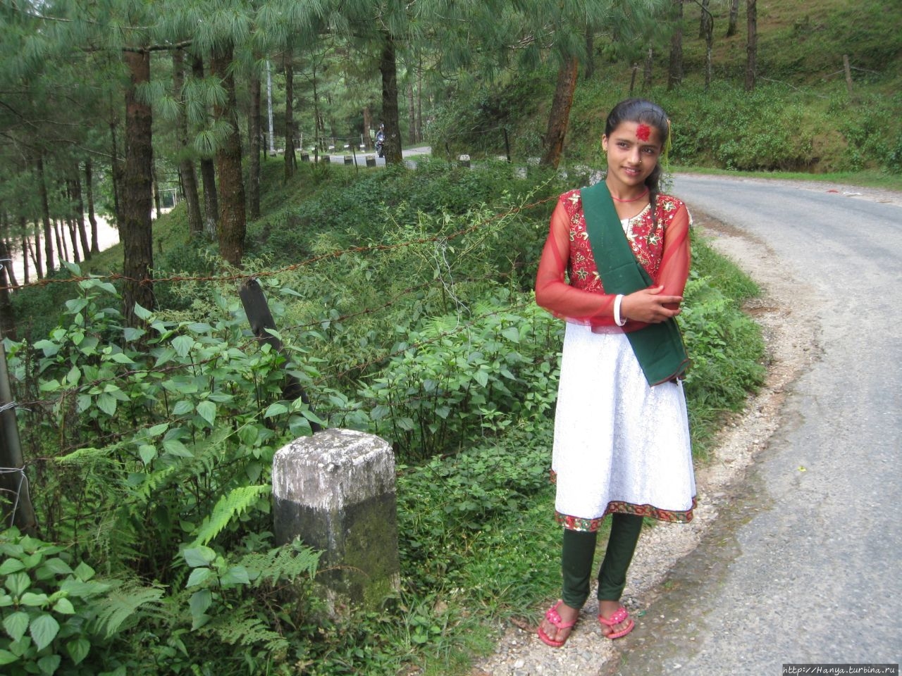 Мы идем по совершенно безлюдной дороге (Нагаркот роуд), и только изредка мимо нас проносятся машины или обгоняют мотоциклы. Хорошо, что у дороги нет развилок, иначе и спросить было бы не у кого, направо пойти или налево. Как любая горная дорога, она не вытянута как равнинные струны автомобильных дорог, и поэтому мы кружим по ее завиткам, уже теряя терпение.