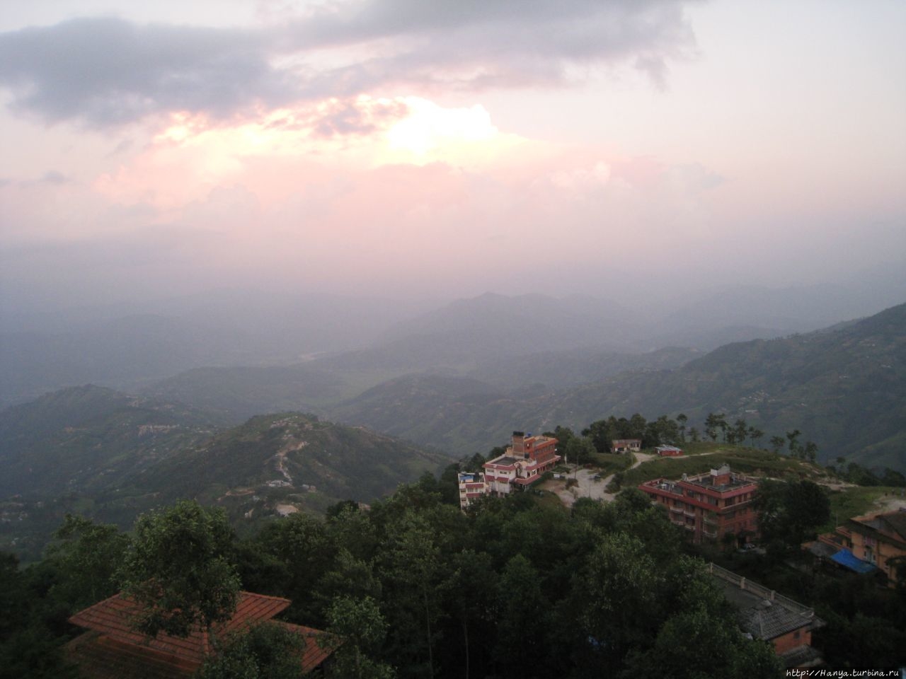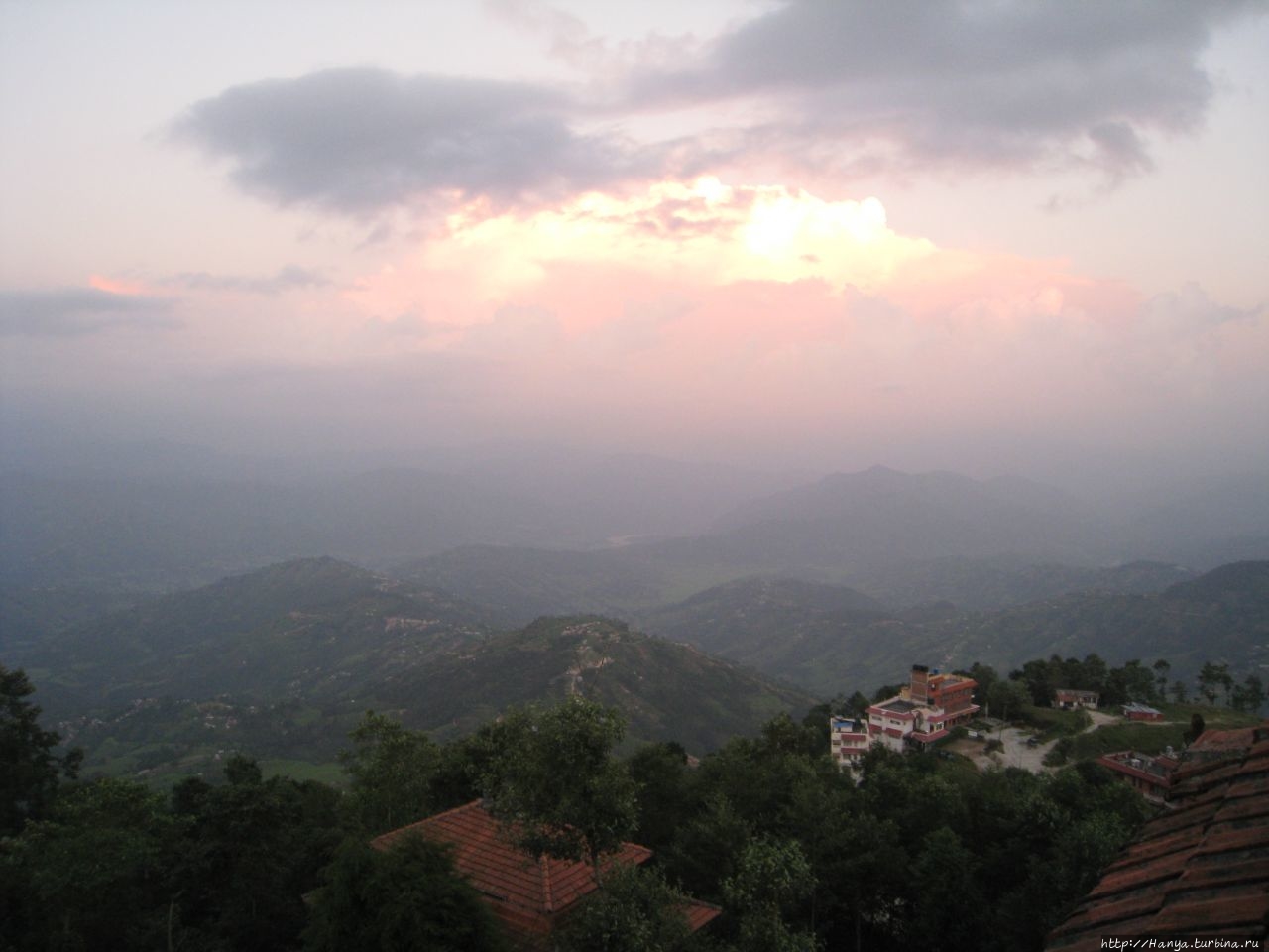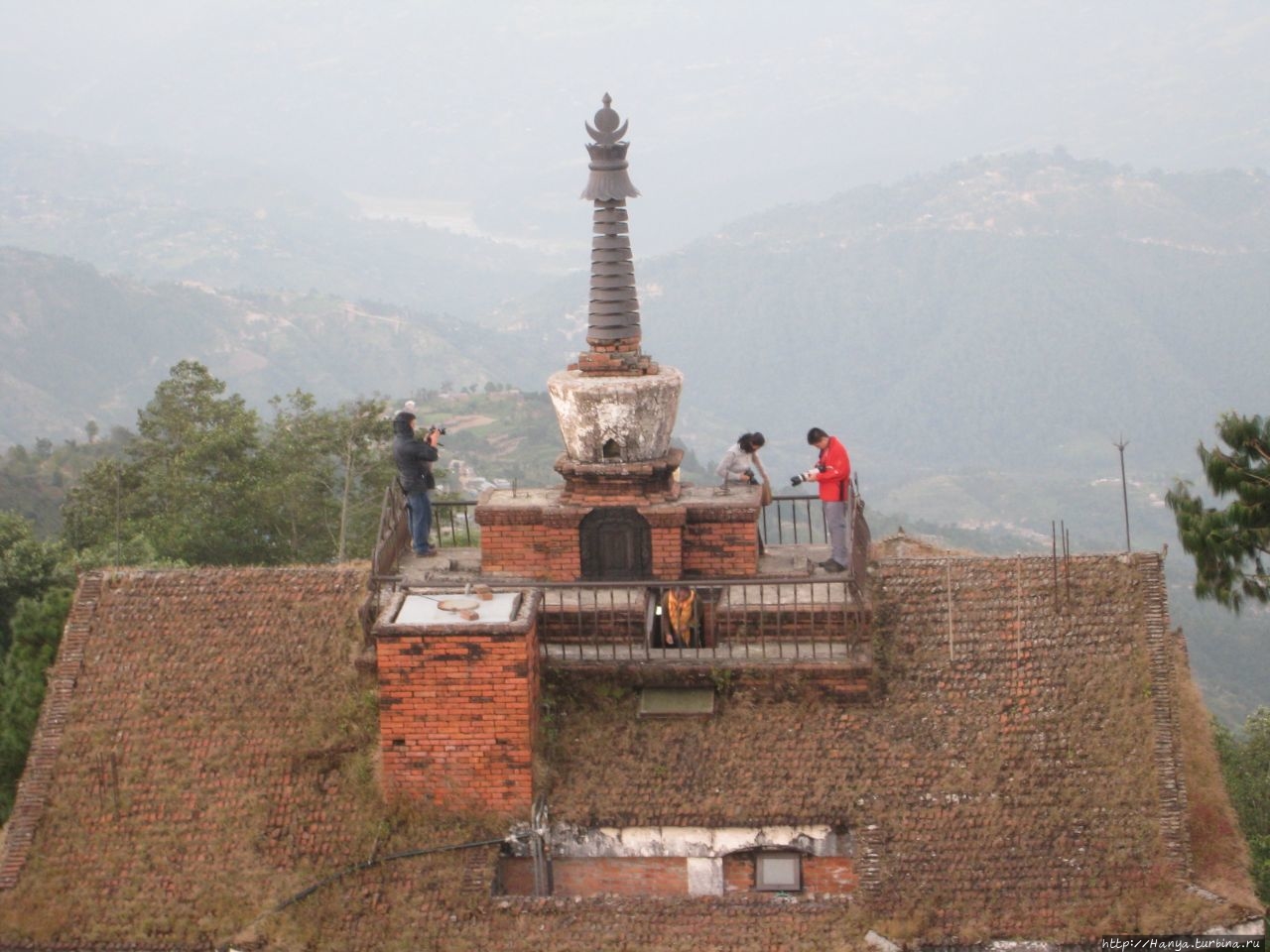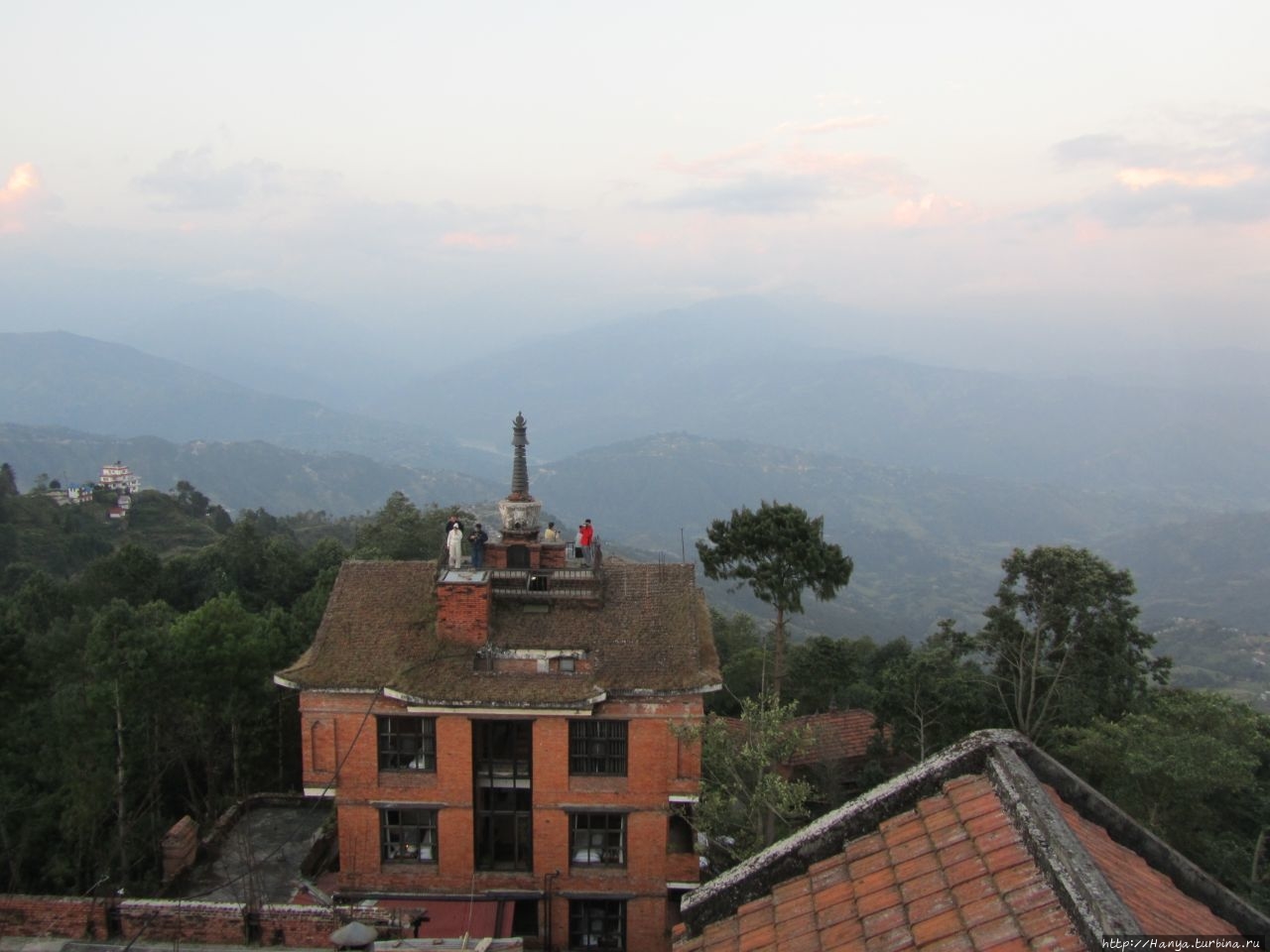Еще один марш-бросок, и мы уже возле долгожданной вышки высотой в 2100 м над уровнем моря, одновременно являющейся смотровой площадкой для туристов. По каменным ступеням поднимаемся на ее площадку и переводим дух, картина под нами имеет живописный вид. Это место стало популярным у местных и зарубежных туристов с 1960 года, а вот давным-давно во времена правления династии Рана здесь был летний дворец короля.