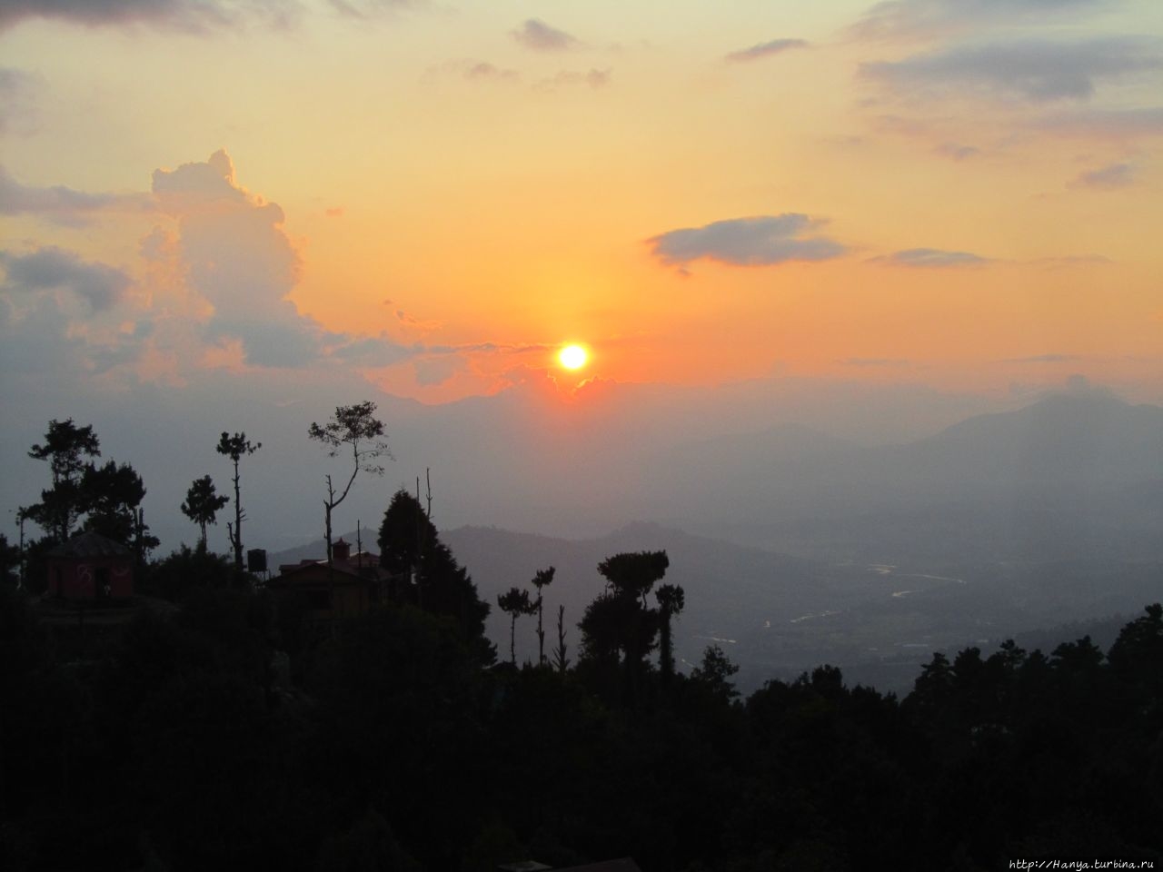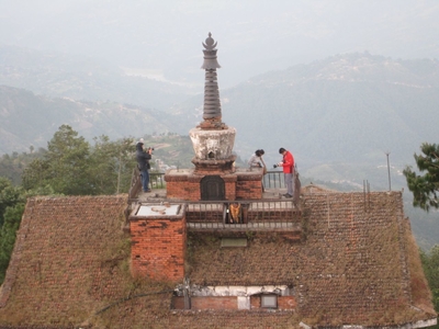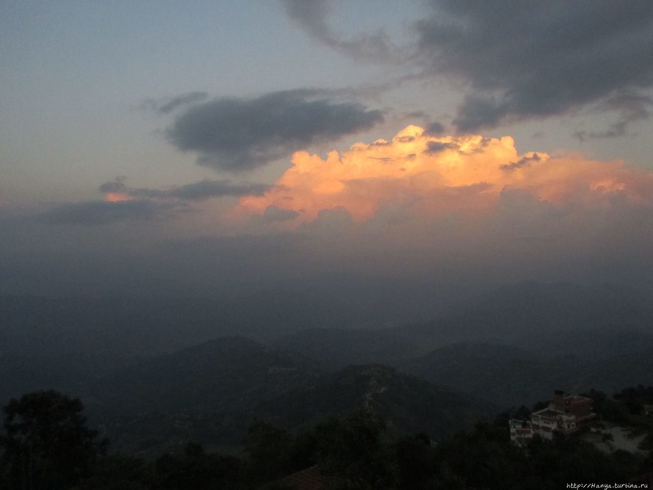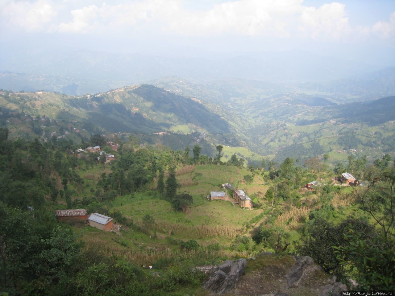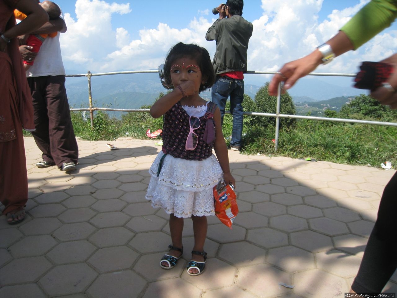 Еще один марш-бросок, и мы уже возле долгожданной вышки высотой в 2100 м над уровнем моря, одновременно являющейся смотровой площадкой для туристов. По каменным ступеням поднимаемся на ее площадку и переводим дух, картина под нами имеет живописный вид. Это место стало популярным у местных и зарубежных туристов с 1960 года, а вот давным-давно во времена правления династии Рана здесь был летний дворец короля.