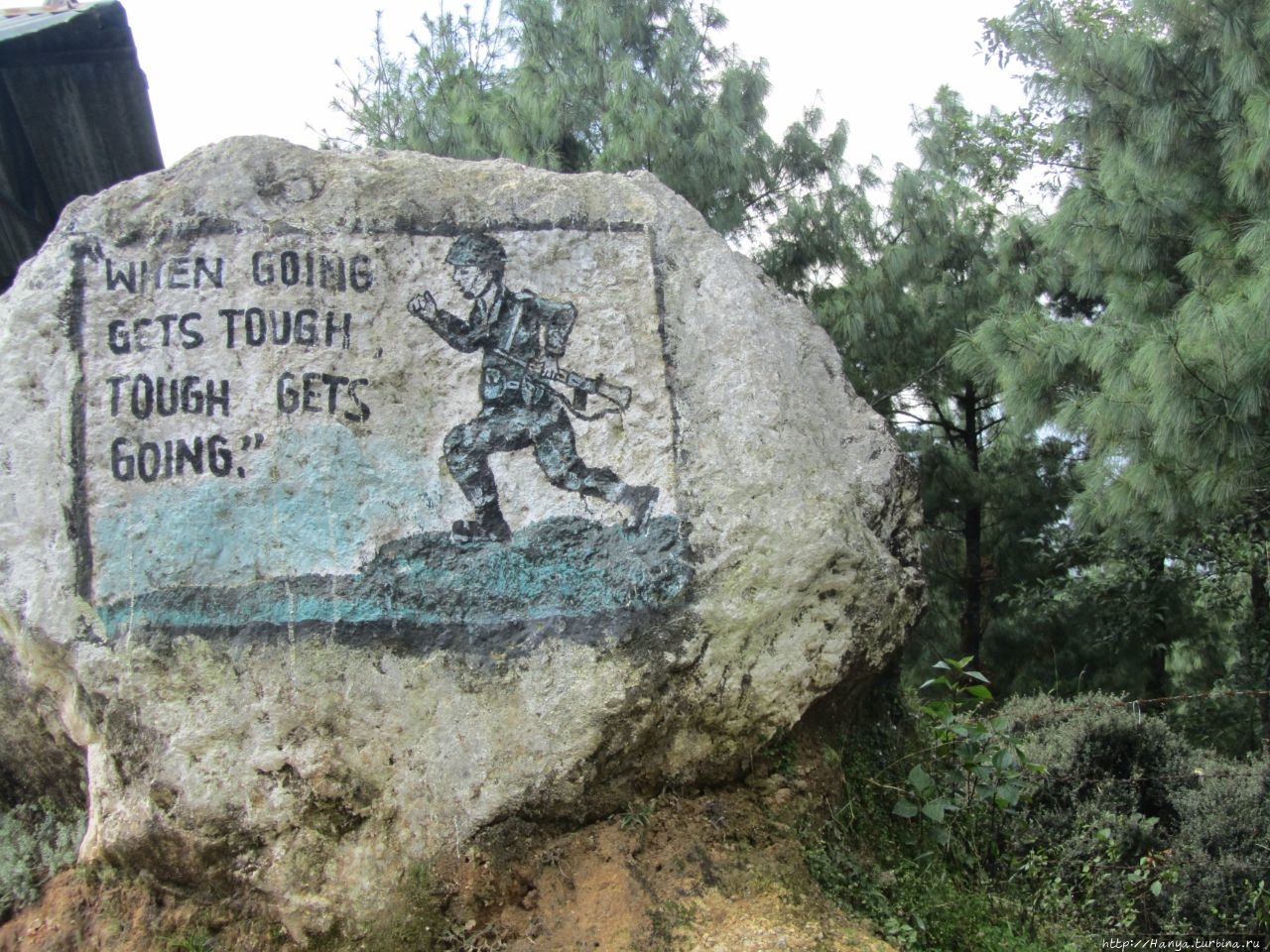 Большинство отелей в Нагаркоте имеют хорошие виды, но считается, что самые лучшие можно увидеть со смотровой башни, в самой высокой южной точке хребта (2164 м), в часе ходьбы от центра вдоль по асфальтовой дороге. Мы заранее прочли, что добравшись до башни, становится понятным, почему Нагаркот был местом оборонительного форта (kot) со времен правления династии Рана: этот холм контролировал восточный вход в долину Катманду и жизненно важный торговый путь в Тибет. А вот следующая информация из интернета немного напрягла нас: «По дороге к смотровой вышке расположена большая военная база с центром подготовки солдат. Однако местное население с напряжением относится к ней после того, как один пьяный солдат убил одиннадцать местных жителей в 2005 году». Это не останавливает нас, и мы твердо намерены пойти к башне.