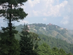 Отсюда видны овощные садики-огородики, зелень холмов и жилые поселки. Все хорошо, но небо в облаках и обещанной панорамы Гималаев, протянувшихся на 300 км, снова не видно. Зато хорошо виден наш отель, который, действительно, выбивается в высотном регламенте города.