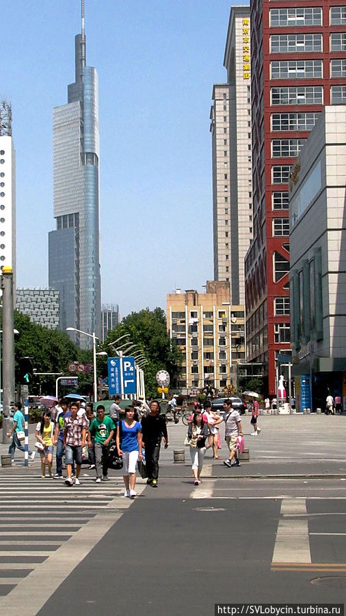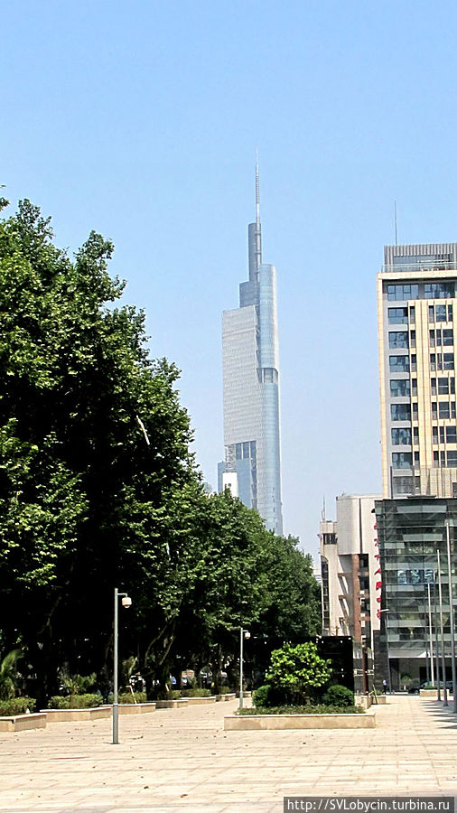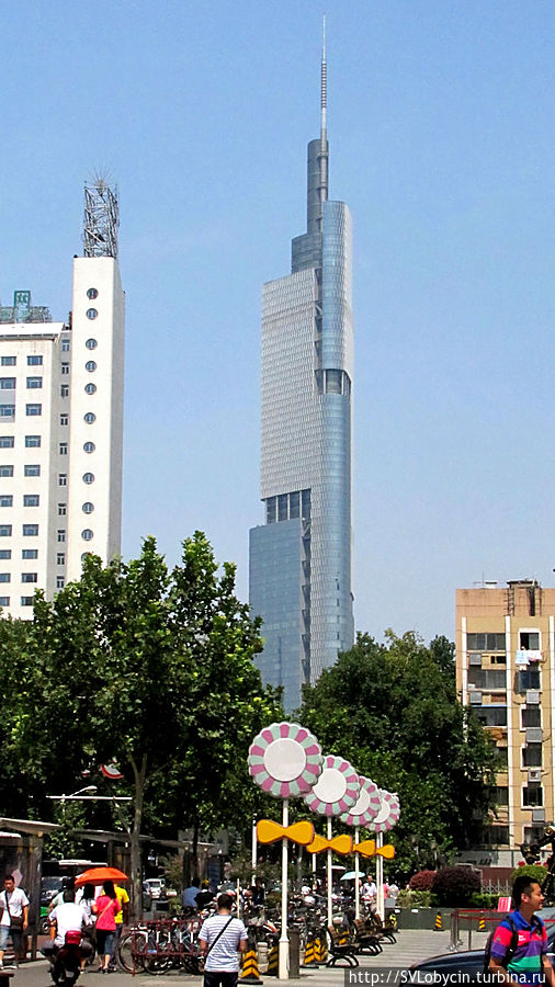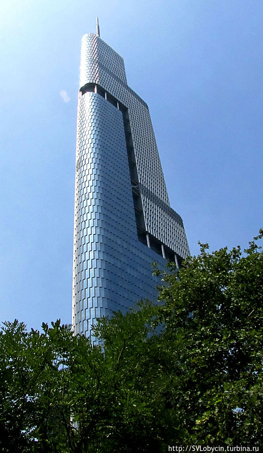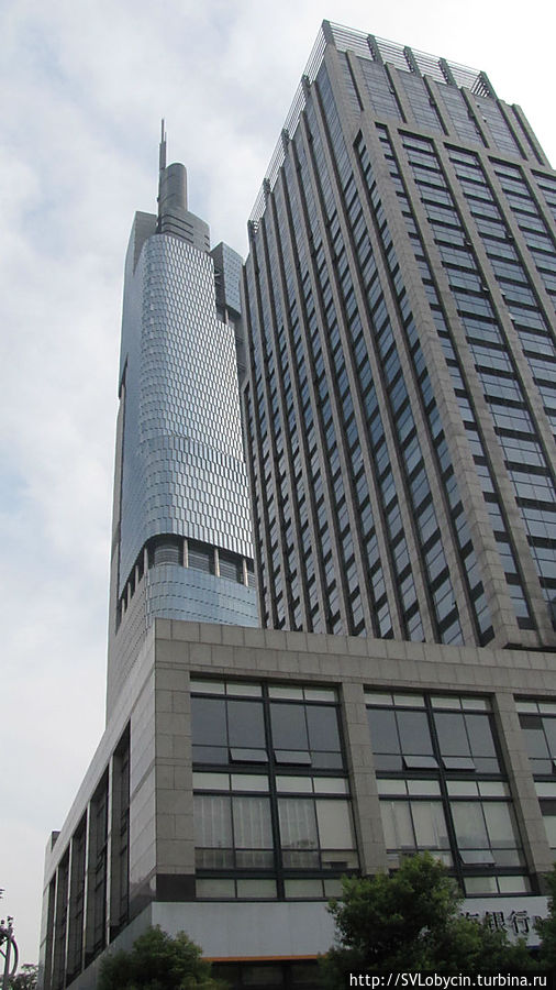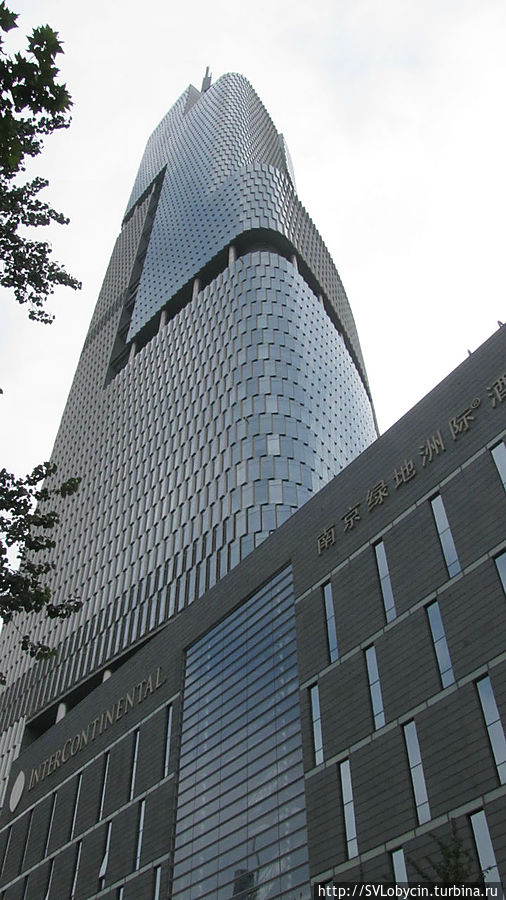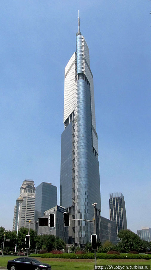 Высота Нанкинского небоскреба 450 м. 88 этажей. Здание занимает 7е место в мире по высоте. По замыслу архитекторов здание как бы олицетворяет дракона, покрытого серебрянной чещуёй. Официальное название здания "Финансовый центр Наньцзин Гринленд".