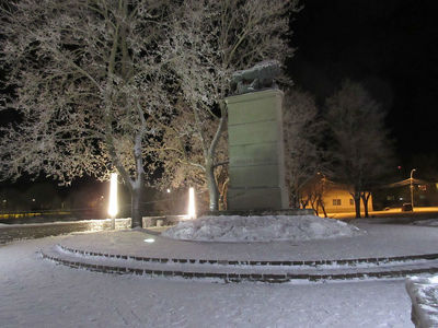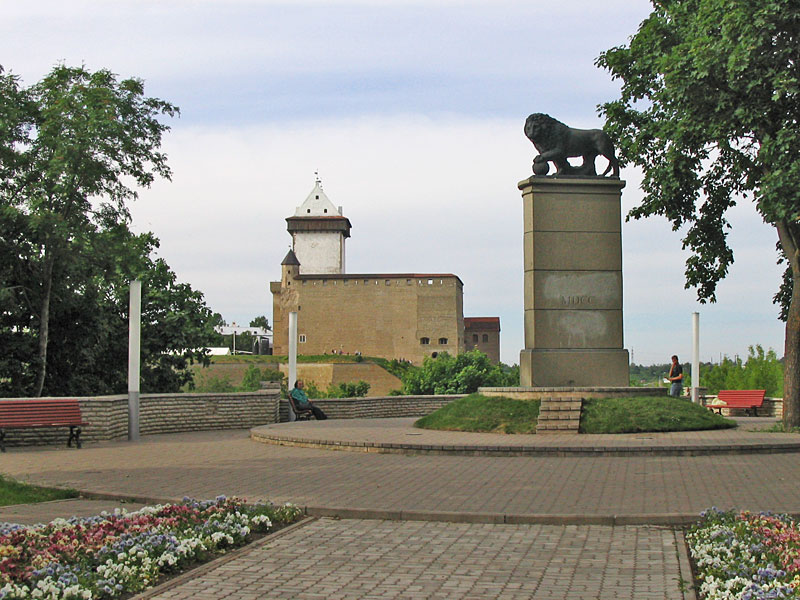 Выше этого комплекса на крутом берегу — Шведский Лев. Подарок шведского короля. Наследили тут шведы немало. На монументе высечено «Svesia memor». Нарвские шутники краской приписали "Мы тоже!"