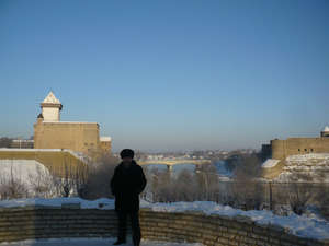 Вот наконец пришла и к нам настоящая зима. Впервые за полтора месяца установилась ясная, солнечная погода. Грех было валяться дома на диване, решил использовать хорошую погоду для поездки в Нарву. Был в Нарве несколько раз, да только все время проездом. Более основательно удалось только сейчас. Очень интересный и своеобразный город в Европейском союзе, где все жители говорят по-русски (80% населения — русскоязычные). В магазинах и кафешках какие-то коммунистические цены (в евро). Веселые и отзывчивые люди, не смотря на экономические трудности нынешнего положения Эстонии.