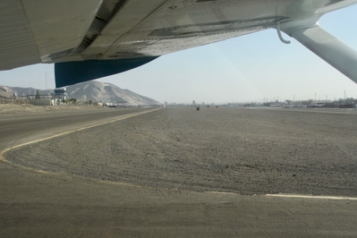 Наска с Наскока (1): дерево, руки и паук), мы поехали в аэропорт Наски.Аэропортик Наски находится очень удобно прямо на краю города и прямо на проходящем через город Панамериканском шоссе. Рядом с аэропортом какие-то невнятные развалины, сомневаюсь, что они остались нам в наследство от инопланетян или от древних жителей плато. Скорее кто-то в свое время посчитал, что туристам получившим свою долю ВАУ от полета над объектами Наски, срочно требуется массаж и построил здесь массажный салон.