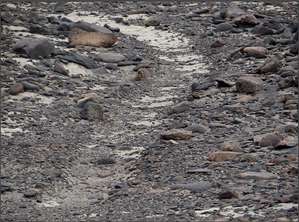 В относительной близи контуры «рисунков» размываются... и превращаются в неглубокие, свободные от камней, отутюженные канавки шириной сантиметров 30. Их цвет намного светлее, поверхность глаже окружающего фона. Вот почему они видны с высоты. Здесь замечаешь одну особенность – ветер ураганный, а ни один камушек не шелохнётся. Лежат, как приклеенные...