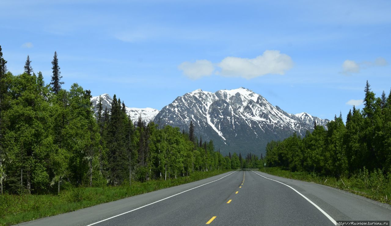 После привала опять я сажусь за руль и мы едем дальше. Дорога начинает утомлять, хочется уже приехать. Но расстояния на Аляске огромные. Это мы еще не так далеко заехали, да и состояние дорог отличное, а вот как путешествуют на далеком севере, где и дорог нет, вот ума не приложу. Впрочем, и путешественников там не миллионы, а всего лишь сотни.