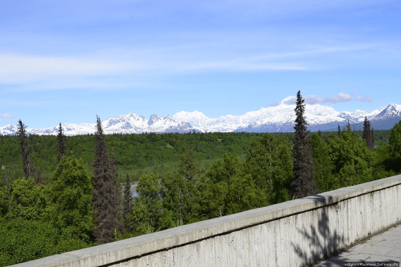 Здесь очень здорово размещены фото-панно, наглядно показывающие какие горы мы видим. На Аляске все сделано очень удобно для туристов. Можно рассмотреть все детально, если есть желание.