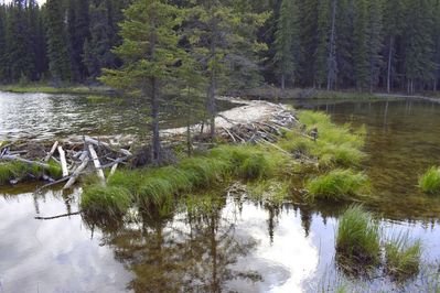 Точно, вот недалеко и его запруда с домиком. А бобров не видно. Хотя, это понятно, они не будут сидеть и ждать нас, что бы попозировать.