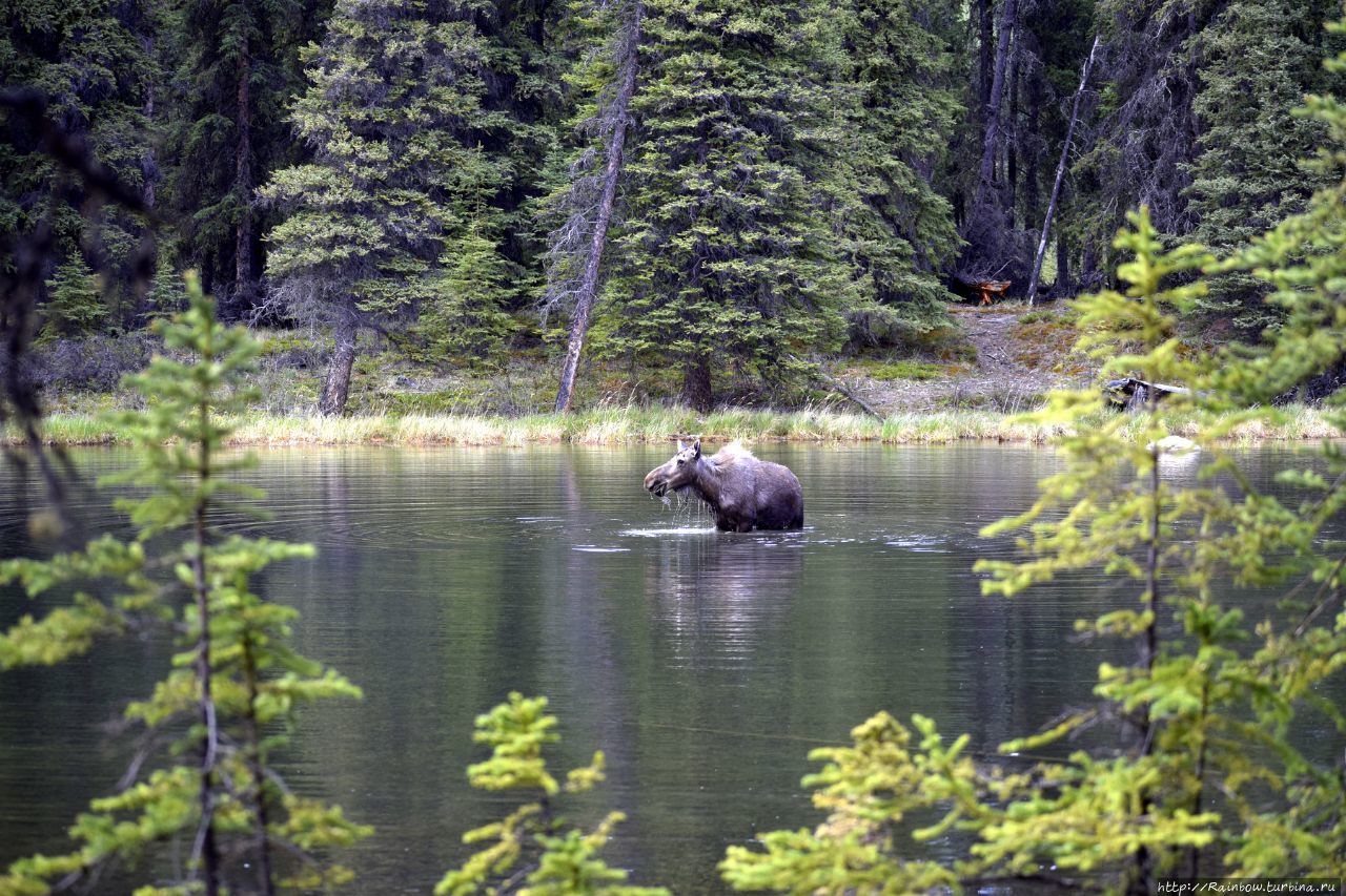 Вот и тут. Посмотрите-ка. Кого видите? Конечно же, лось пошел в озеро.