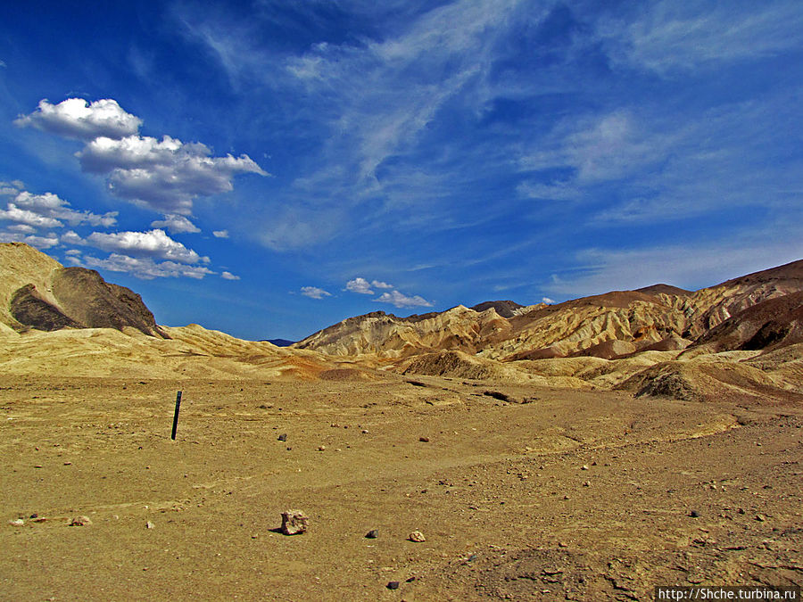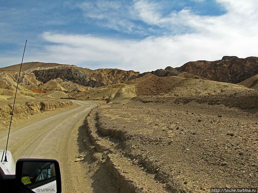 Долина Смерти. "Палитра художника" на дороге художников, это узкая односторонняя дорога для наблюдения чего-то интересного. Прошлый проезд по Artist's Drive открыл для нас уникальное место и подарил кучу положительных эмоций. В надежде на похожее мы без тени сомнения свернули и здесь...