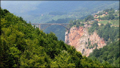 В этом огромном экологическом парке имеются не только природные красоты, но и величественные сооружения созданные людьми, например, бетонный мост через реку Тара.