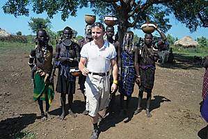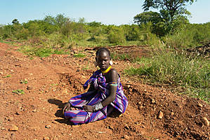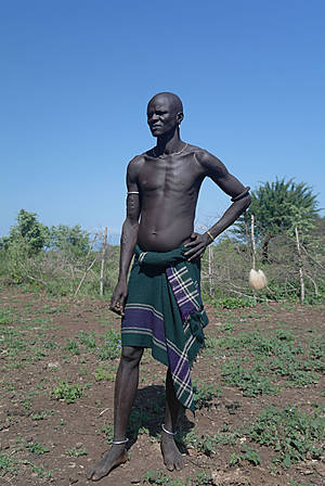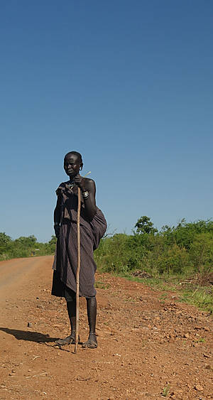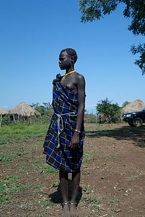 Когда начинается разговор про мурси, думаю, что всегда необходимо уточнять, о ком именно идет речь. Фактически, существует несколько мурси, живущих в долине: изначальный каменный век, основанный практически на охоте и собирательстве, скотоводство занимает их не особо сильно, но коров используют и для получения молока и связанных с ними продуктов (любят пить кровь с молоком), а из самых известных церемоний — сражение на деревянных палках в человеческий рост , изначально — до смерти проигравшего (церемония получила название донга ) — так мурси показывают свою удаль для того, чтобы быть избранными самыми достойными женщинами племени (про самых достойных женщин — чуть ниже); отделившиеся несколько веков назад от них племена сурма и ньянгатом, поссорились со старейшинами и переправились по другую сторону Омо, и внешне, и языком сильно отличающиеся от первых; отделившееся не так давно от первых племя боди, которое не согласно с основными мурси в части того, что коров убивать нельзя — ушли выше по течению Омо и в выше в горы, придумали несколько своих обрядов (в частности, достигшего половой зрелости и желающего жениться юношу родственники к определенному периоду откармливают всеми силами и запрещают двигаться и работать — полнота характеризует богатство и достаток, завидный жених, значит, а потом интенсивно худеет; на мой взгляд, именно из-за этого обычая племя в основном влачит голодное существование ), и про них ходят нехорошие слухи, что своих погибших соплеменников они используют в пищу; и самые известные — фотографические мурси, которые, по сути, не занимаются вообще ничем, кроме имитации внешнего облика и повадок мурси номер один, спустились с гор максимально низко, как только дозволено (все же живут они в национальном природном парке