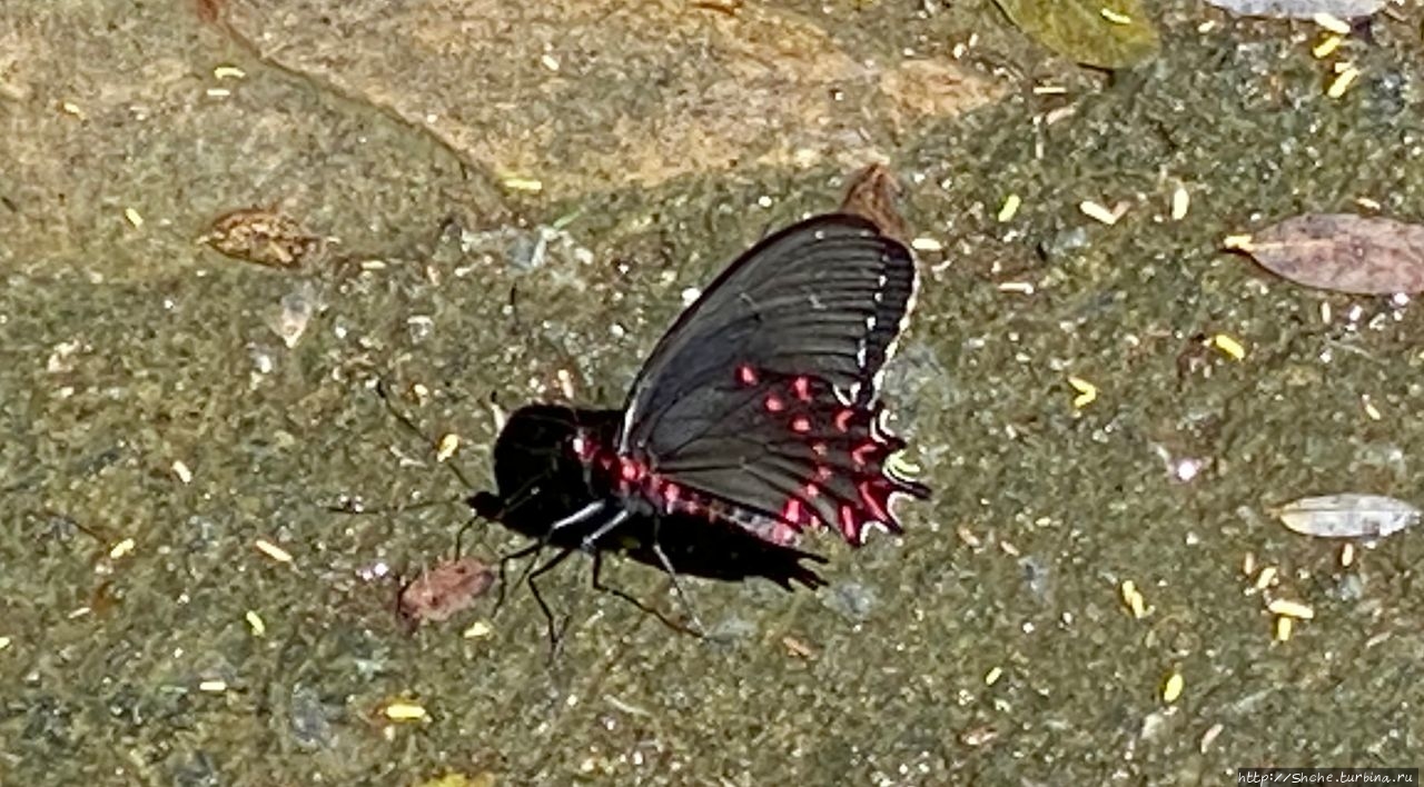 В одном месте, где горный ручей таки не пересыхает, устроители организовали небольшую ванну-накопитель, которая привлекает множество бабочек...