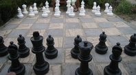 Обнаруживаем уличные шахматы с большими черно-белыми пластиковыми фигурами, и это так здорово! А главное зримо и занимательно. Эта открытая шахматная доска расположена в розовом саду, кроме которого на территории имеется еще и органический травяной.