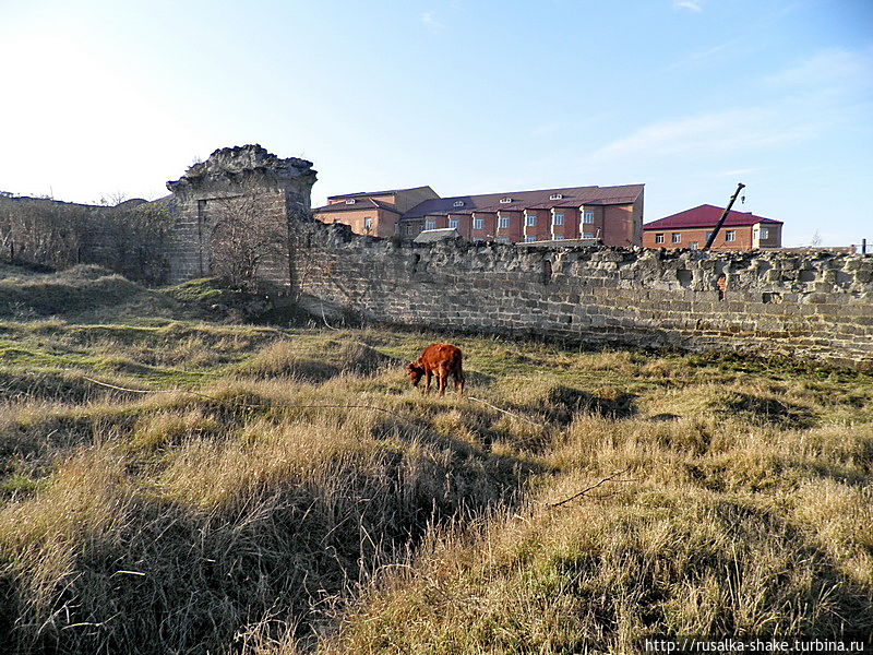 Более 100 метров стены полностью разрушено или заменено кирпичной кладкой и использует Назрановской районной больницей и местными жителями как часть строений.