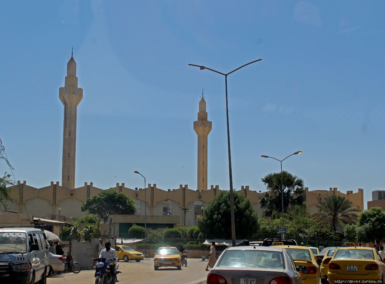 Самая роскошная мечеть в столице Мавритании. В столице мусульманской африканской страны Чад Нджамене тоже есть своя Большая мечеть, вот только подавляющее большинство посетителей города могут ее увидеть только из окна автомобиля, или автобуса. В лучшем случае вот так (нашей группе, в составе которой я путешествовал по Чаду, и такой вид оказался недоступен).