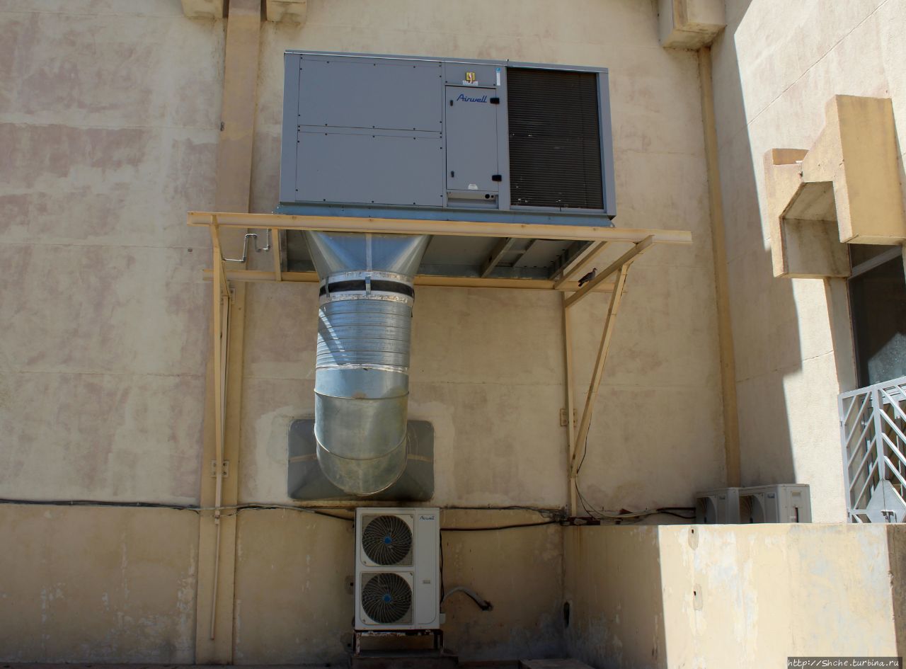 Только здесь заметны преимущества современной мечети в городе, где температура воздуха после полудня просто не бывает ниже 30 градусов. Несколько вот таких кондиционеров (я не спец, но таких больших я не припомню нигде) висят на внешней стене, обеспечивая внутренний комфорт...