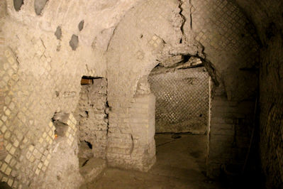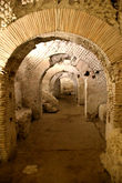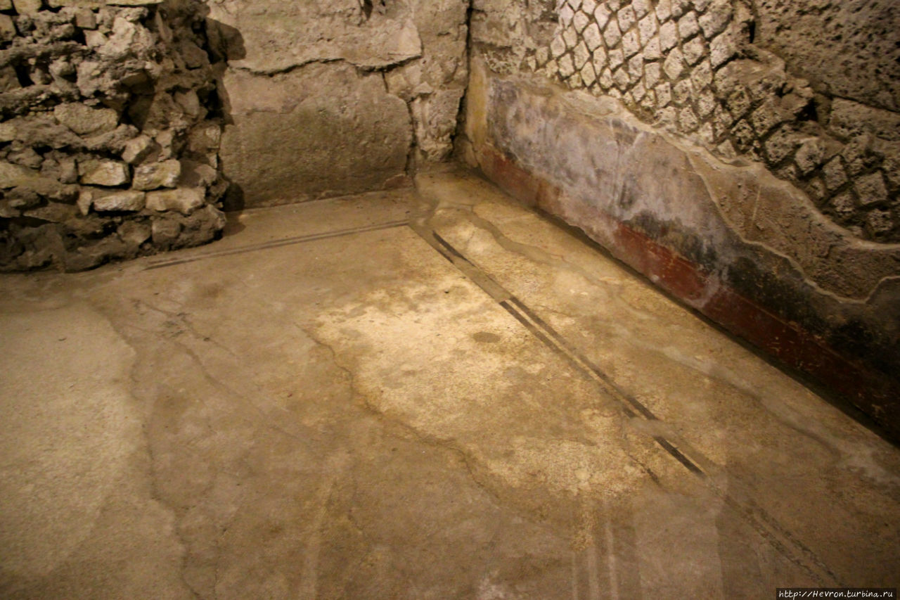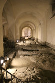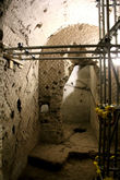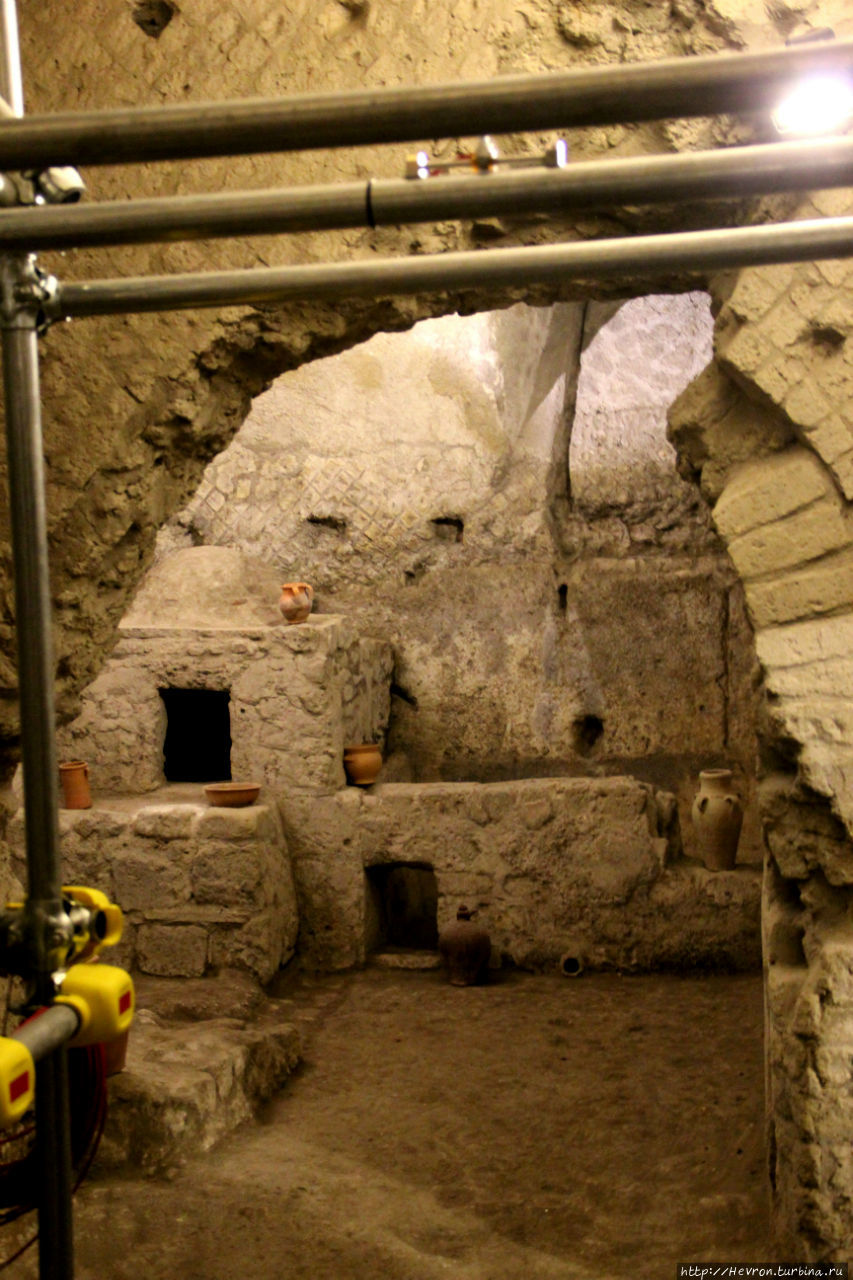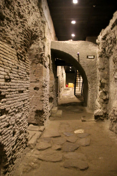 Кардо упирается в крытую галерею. Это подземный коридор, освещаемый сверху большими проемами, через которые так же попадал свежий воздух. Здесь на прилавках из камня лежали продукты питания. так же они хранились в настенных нишах.