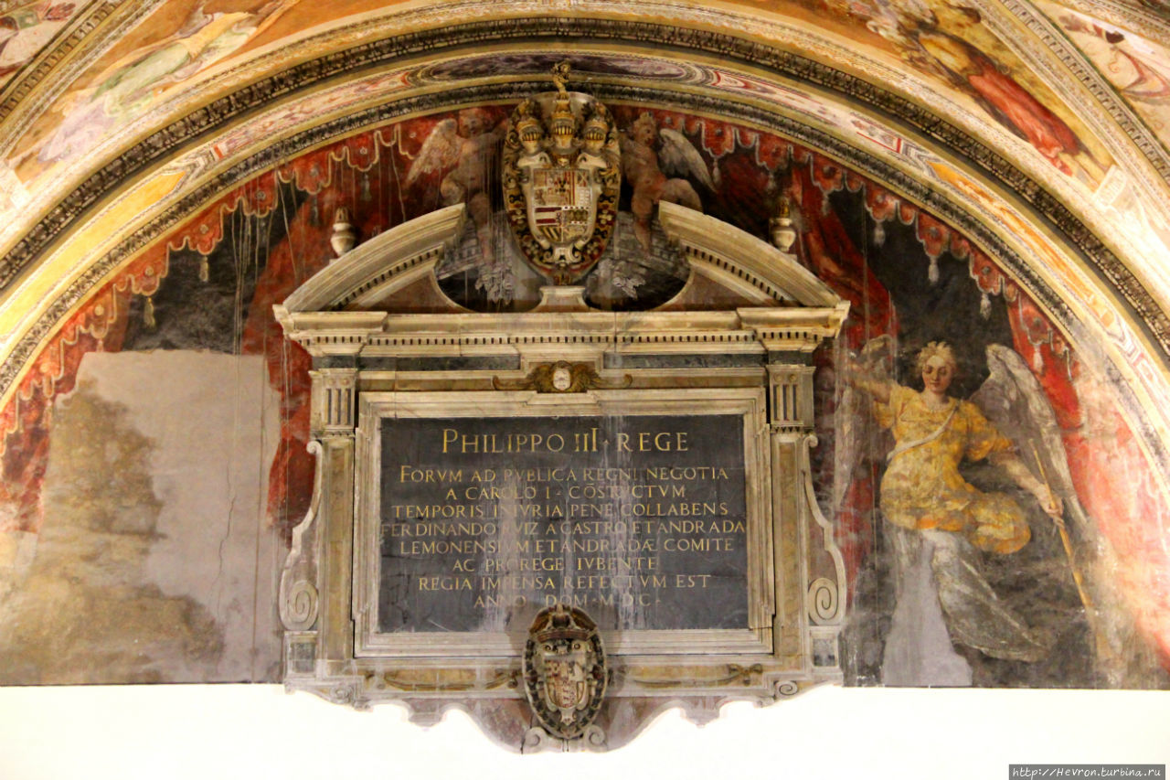 Среди помещений монастырского комплекса особенно выделяется Зал Сикста V, названный именем 227-го папы римского. Потолок и своды залы украшены росписями Луиджи Родригеса начала XVII века. На фресках изображены королевские добродетели. Считалось, что только человек, обладающий всеми этими перечисленными добродетелями, был достоин править королевством.