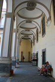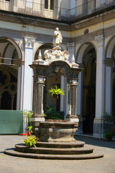 Сан Лоренцо Маджоре отличается от других храмов Неаполя тем, что под ним раскопали целый римский рынок. Поэтому можно посетить не просто церковь и монастырь, но еще и прогуляться по древним улицам римского города. Кстати, в здании монастыря располагается музей. Саму церковь нам посетить не удалось, после обеда в воскресенье она была уже закрыта.