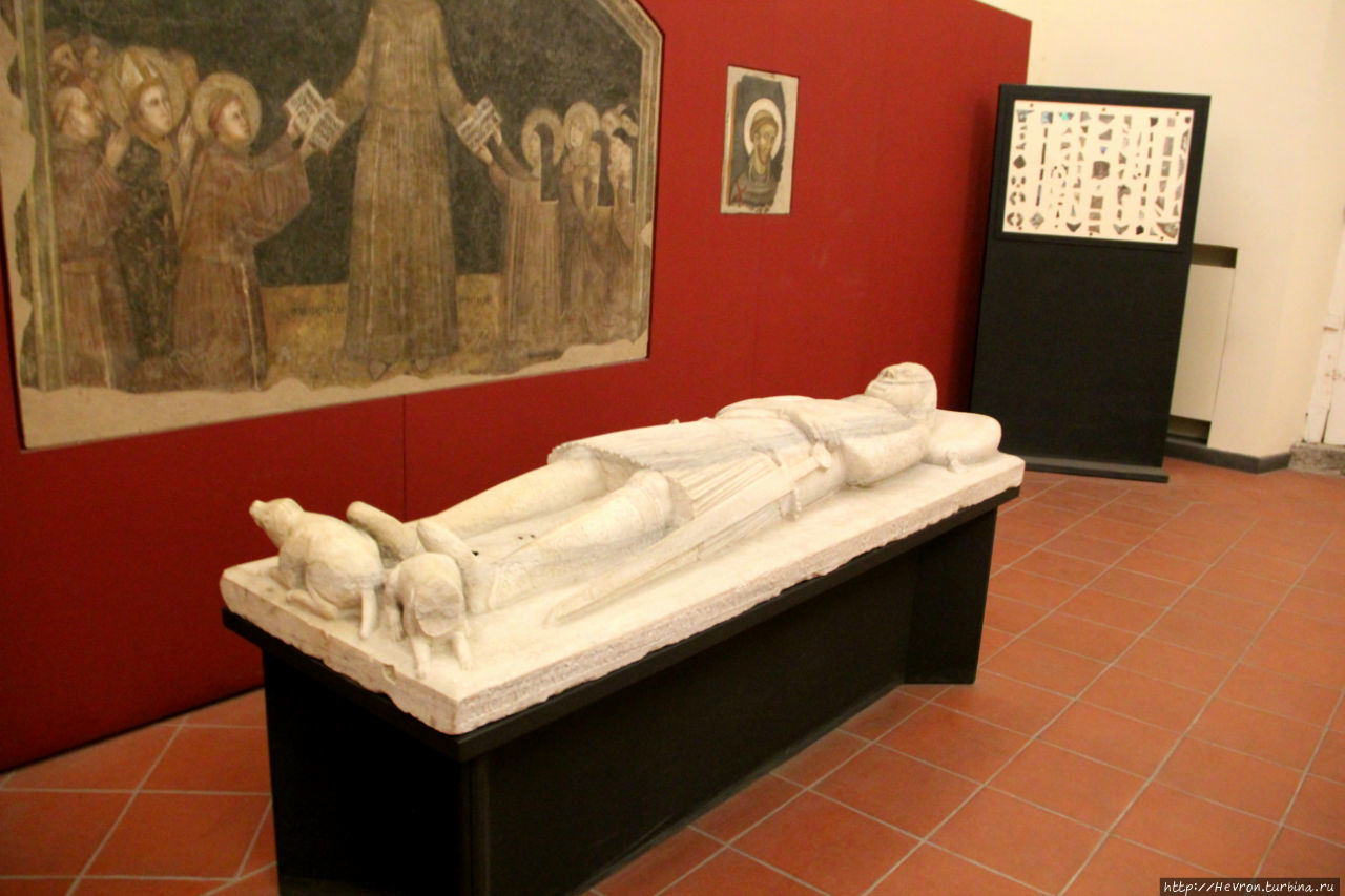 Далее период средневековья. Здесь представлены различные фрески работы неизвестных неополитанцев. Погребальные памятники XIV-XV веков. Три крышки саркофага с фигурами рыцарей ордена Людовика Тарентского, второго мужа королевы Джованны Анжуйской.