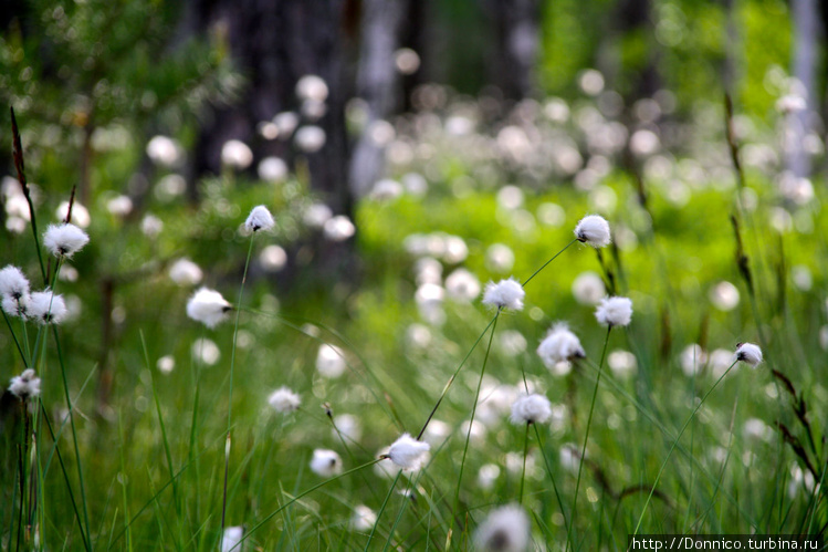 Пушица кажется очень нежной и практически невесомой. Так и хочется набить из ее пуха небольшую подушку и прилечь на этих лугах, но нельзя... труба зовет