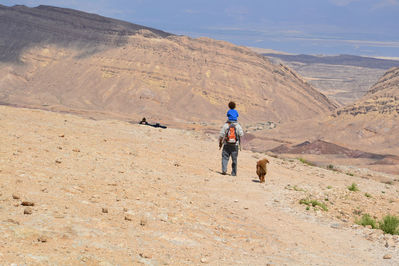 Ну, нельзя же увидев такую красоту, ею не поделиться. Так что во второй раз это была уже самостоятельная поездка с домочадцами. По узкой, но асфальтированной дороге доехали до указателя на Махтеш катан, оставили машину на стоянке, где один большой плакат указывал направление в котором в четырехстах метрах вы найдете питьевую воду и только питьевую, а другой призывал сохранять чистоту и увезти весь свой мусор.