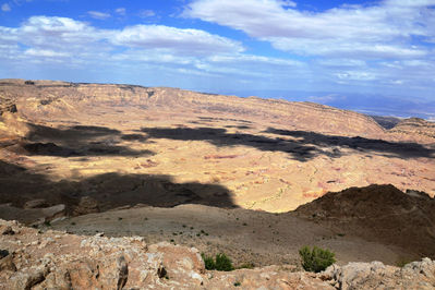Бойцы Пальмаха, однажды продвигаясь по своим боевым делам в пустынных районах Негева, обнаружили нечто потрясающее не обозначенное на имевшихся в их распоряжении британских картах — эту огромную глубокую чашу размером 3 на 4 километра, из которой есть только один выход.