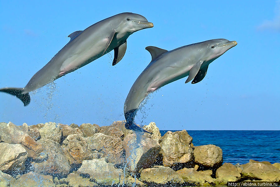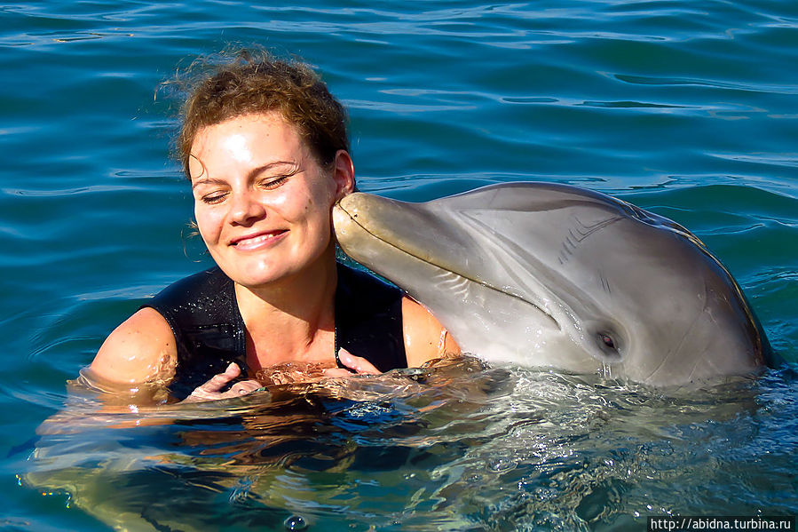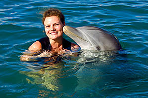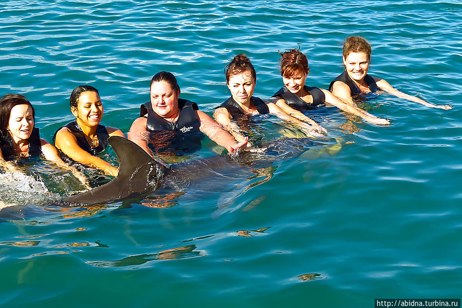 В который раз я убеждаюсь, что самые яркие эмоции нам, взрослым, дарит общение с животными. Даже важные взрослые дяденьки и тетеньки вмиг превращаются в визжащих от восторга детей при контакте с "братьями меньшими"! Сафари в Кении, где ты только наблюдаешь за животным миром... Купание с дельфинами на Карибах, где ты непосредственно общаешься с дельфинами... Это неперадаваемо, и чтобы понять, насколько — надо прочувствовать! Для меня опыт плавания с дельфинами, этими милыми и умными животными, на Ямайке, был уже далеко не первым. Я купалась с ними, будучи в других странах на Карибах — в Мексике, на Кубе и в Доминикане. Программа везде несколько отличается, но суть одна. Неправильно думать, что всех запускают в море или специальный бассейн, где народ купается вперемешку с дельфинами. Это совсем не так. Купание с дельфинами идет по сценарию, чему предшествует инструктаж. Сначала обычно группа "купающихся" выстраивается в линию, и дельфин пропывает под руками, чтобы все могли его погладить. Затем это милое создание подплывает к каждому по очереди: приветствует, целует, апплодирует или поет. После чего начинаются "катания" на дельфинах: на животике, держась за плавники. Кульминация — когда два дельфина своими носами выталкивают тебя из воды, упираясь сзади в ноги. В любом случае, какой бы ни была программа, впечатления потрясающие!