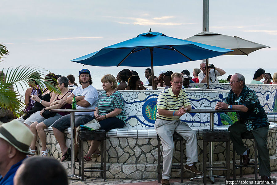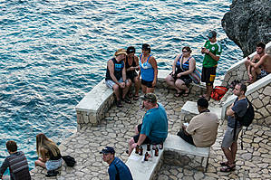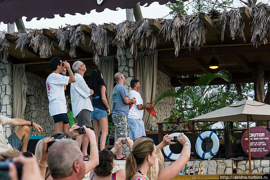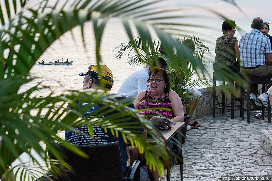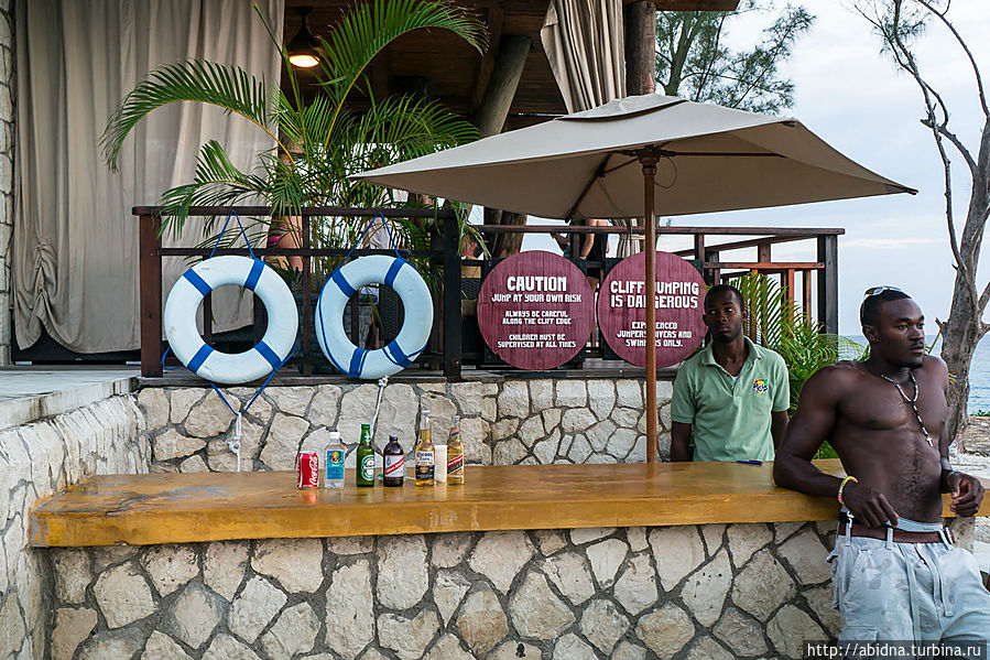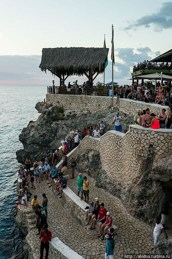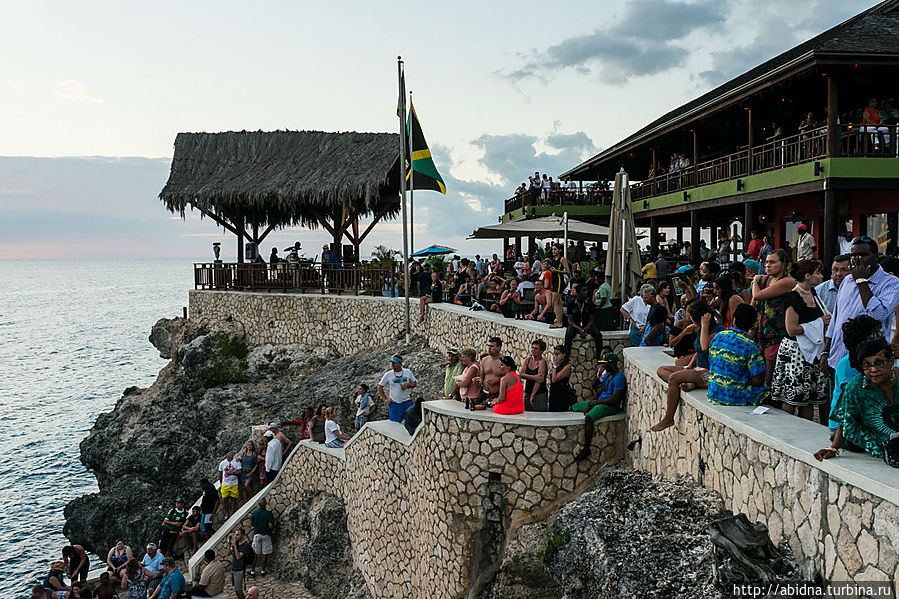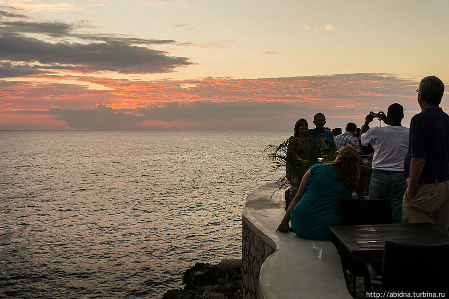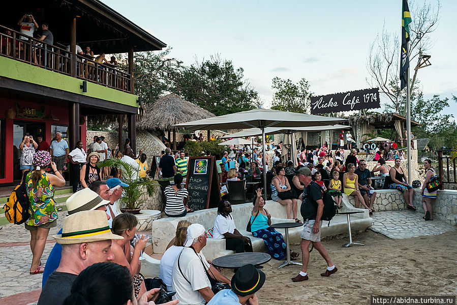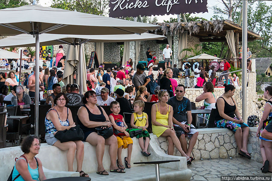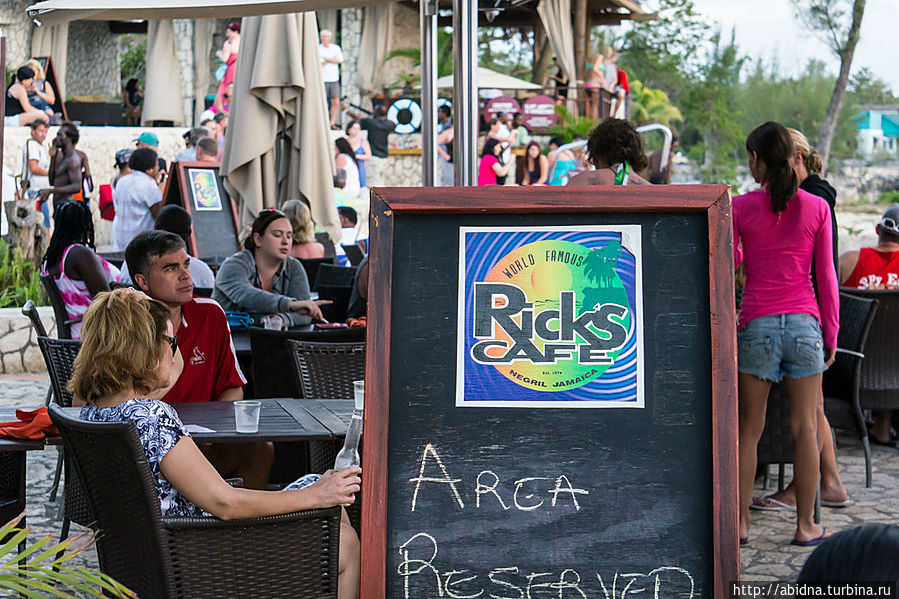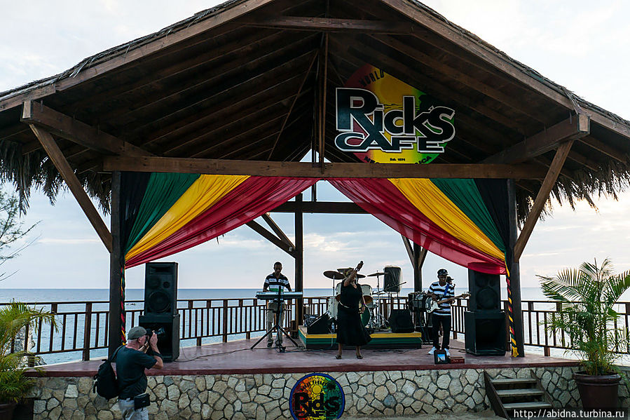 Rick's Cafe — это знаменитый на Ямайке бар, живописно расположенный на скалах в западной части курорта Негрил. Бар открыт с 1974 года, и, по слухам, здесь отрывались музыканты Rolling Stones и многие другие. Отсюда открывается великолепный вид, и можно наблюдать красивый закат. Местные музыканты играют регги, в меню — широкий выбор местных коктейлей. А многочисленных посетителей также развлекают местные жители, прыгающие со скал и деревьев в море. Некоторые посетители даже пробуют повторить их опыт, но с малой высоты. В общем, пока то да се, я почти упустила из виду сам закат. Хотя, к сожалению, в тот день это было, видимо, не самое захватывающее зрелище.