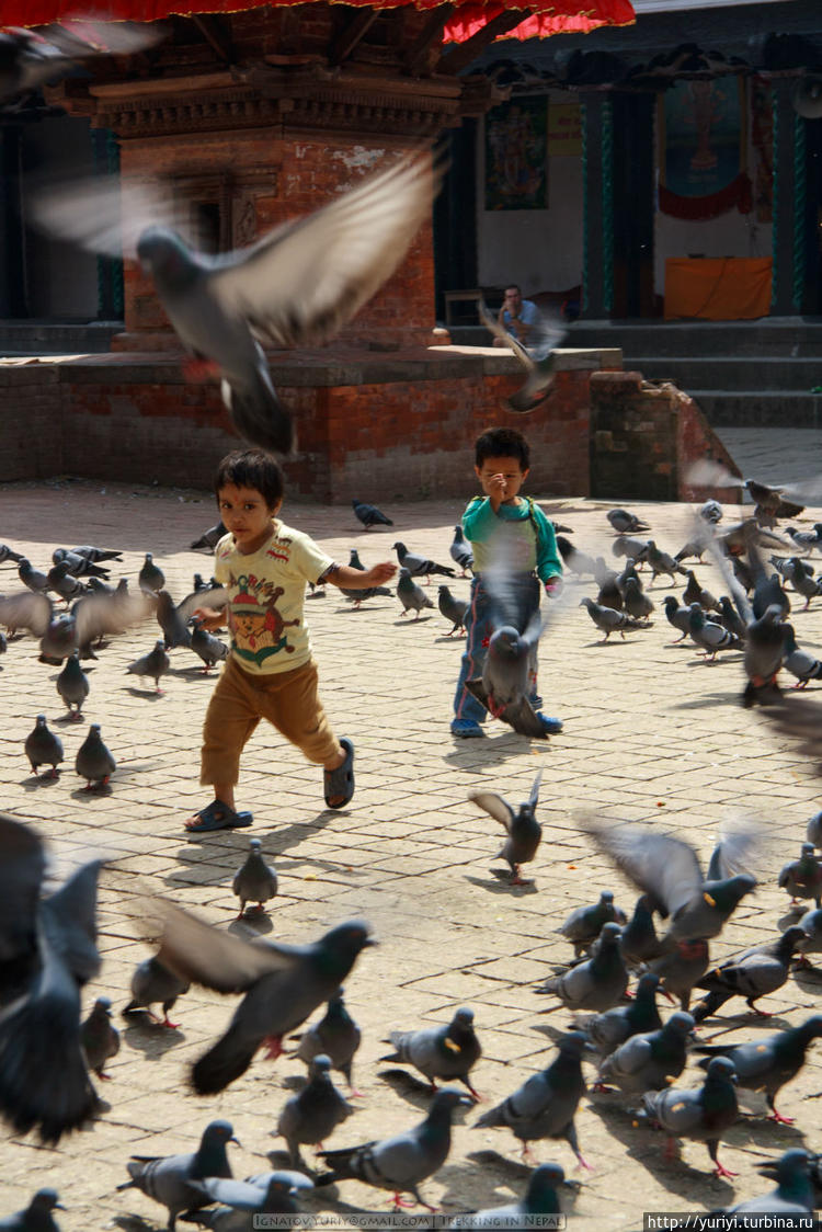 Площадей Дурбар в долине Катманду аж три: в Катманду, Патане и Бхатапуре. До объединения, Непал состоял из мелких королевств и площади Друбар — то немногое, что осталось с тех времен. На входе — закрытый дворец, на парапете стоит военный и играет на сопилке... Вот мимо пробежала макака, кто-то ест, кто-то молится — ну, полный Непал!