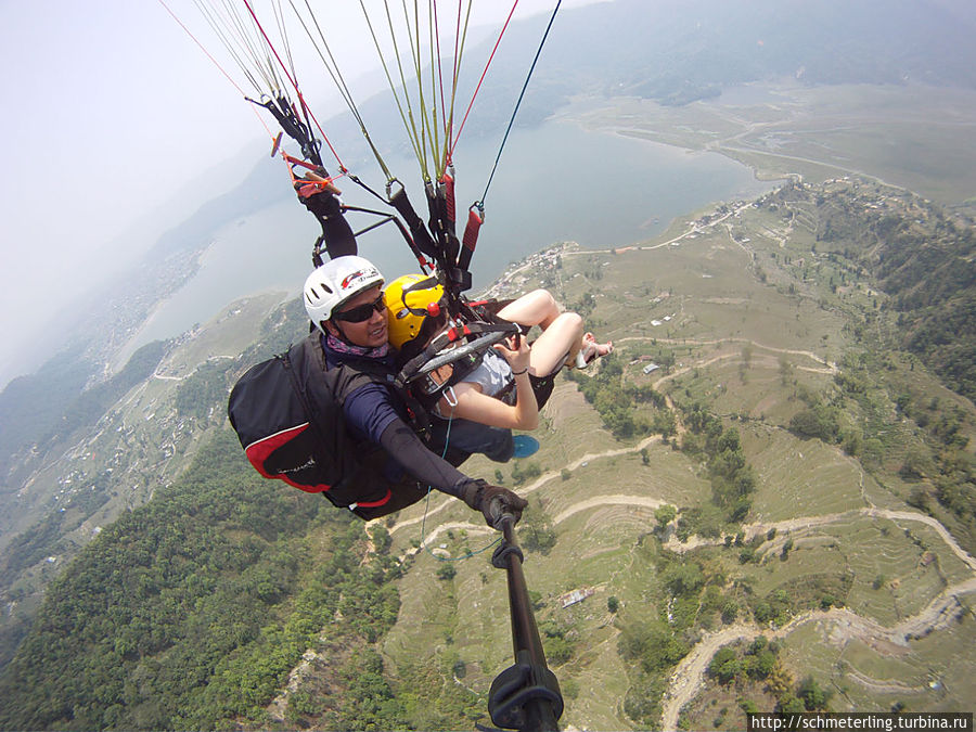 Первое утро в Покхаре было посвящено параглайдингу. Оговорюсь, что в Покхаре — масса возможностей полетать: в городе очень много офисов, предлагающих свои услуги. Летают тут же рядом: разбегаясь с вершины Сарангот, парят над озером Фева на высоте до 2000 метров над землей.