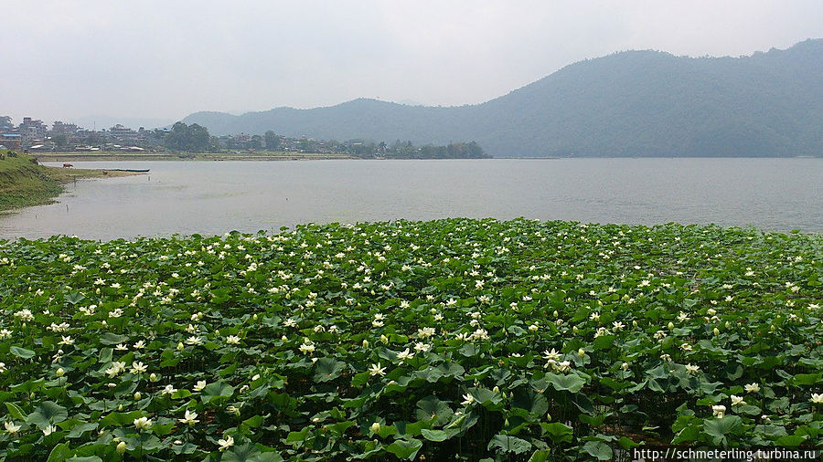 На катамаране удалось добраться до другого берега, откуда начинается лесная тропа на вершину холма, где расположилась Белая Ступа Мира, World Peace Pagoda. Белоснежная ступа была построена японцами 20 лет назад. По ее периметру расположены статуи Будды, отмечающие основные вехи его пути к просветлению. Со ступы открывается отличный вид на горный массив Большого Гималайского хребта.