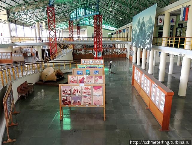 В день отъезда мы успели побывать в Международном музее альпинизма. Кроме собственно секции альпинизма, представленной использованными кислородными баллонами с Эвереста, древними горными ботинками, фотографиями первопроходцев и их вершин, в музее можно обнаружить экспонаты, рассказывающие о жизни горных народов, животных, растениях, о геологии – весьма познавательно. Есть здесь даже скалолазная стена, на которой тренировался тот самый Эрцог.