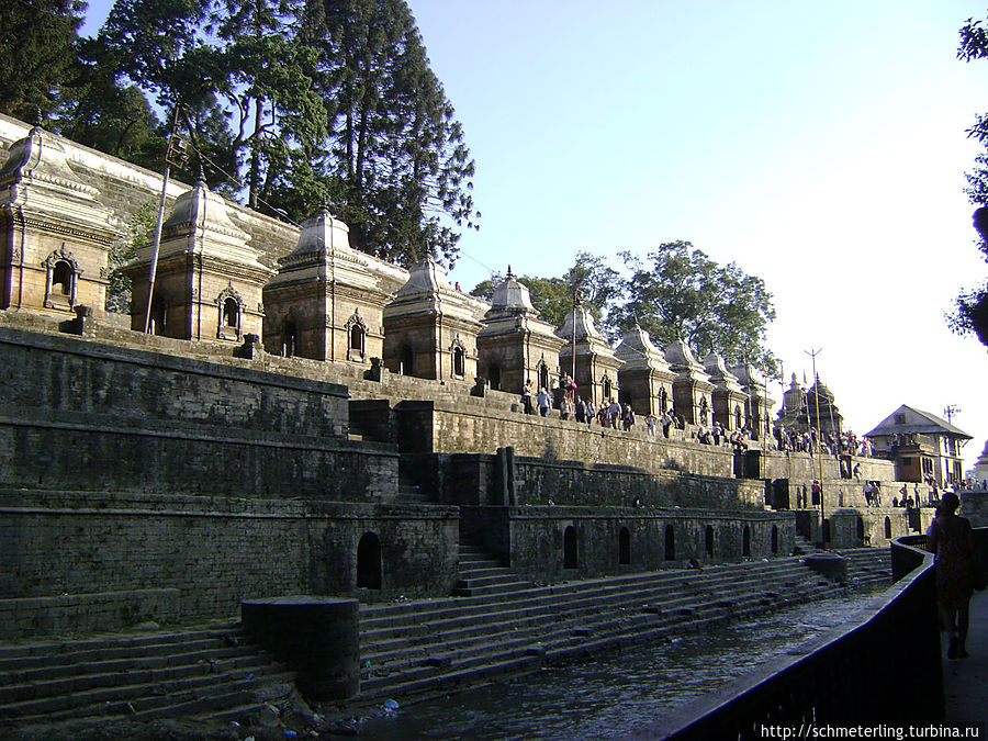 Сегодня мы в Пашупатинатхе, где сжигают тела умерших. Как и в случае с Кумари, процесс лишен какой-либо торжественности и даже трагичности. Тело безмерно почившего, покрытое желтым саваном, лежит на деревянном настиле. Вокруг стоят несколько мужчин, что-то негромко обсуждают. Рядом уже догорает другой костер: видна обуглившаяся ступня и пахнет жареным мясом, что на жаре особенно невыносимо. Все действие сосредоточено на берегах священной, до безумия грязной реки Багмати, где не только отправляют родственников в последний путь, но также стирают, моются, и даже бреются.