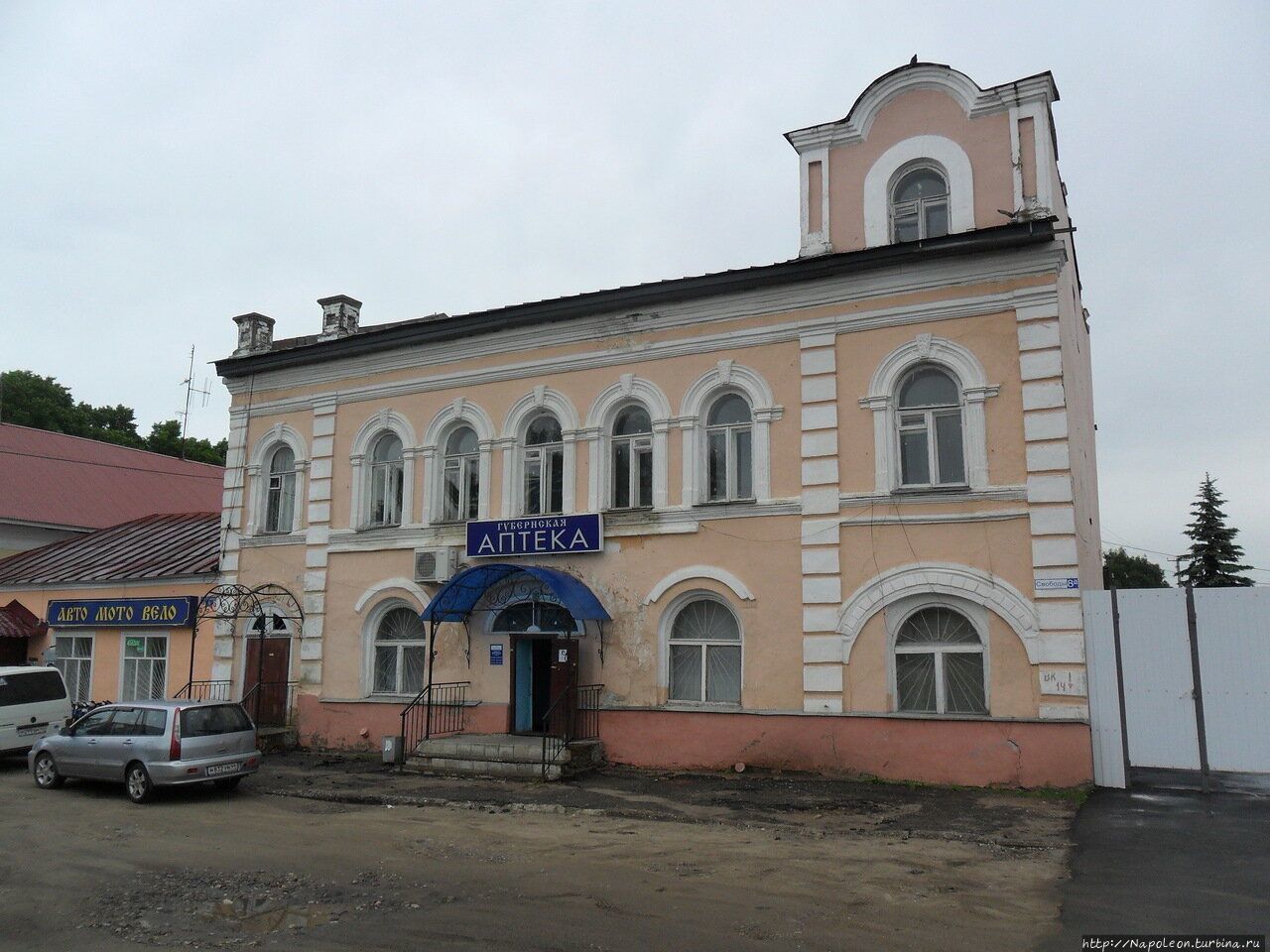 Прямоугольный в плане слегка вытянутый вдоль площади объем с двускатной кровлей дополнен мансардой над южным торцом. Главный фасад с асимметричной композицией расчленен на всю высоту рустованными лопатками, выделяющими неравные по ширине боковые одноосевые прясла. Горизонтальные членения фасада подчеркнуты многообломным междуэтажным карнизом, прерываемым лопатками, и полным антаблементом. Более широкое правое прясло с заложенной проездной аркой (на ее месте сейчас окно) завершено мансардой с полукруглым аттиком над арочным окном. В левом прясле находится вход, ведущий на лестницу во второй этаж. Над лопатками этого прясла возвышаются парапетные тумбы, между которыми некогда была решетка. В средней части первого этажа расположены вход в магазин и два окна-витрины по его сторонам. Во втором этаже – семь окон, в том числе пять в средней части...